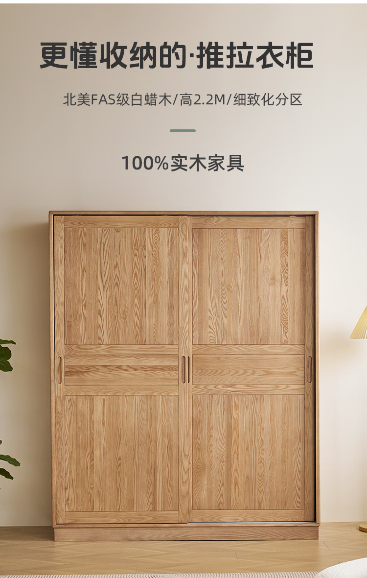 원목 미닫이 옷장, 가정용 침실용 화이트 애쉬 목재 미닫이문 대형 옷장 수납장 슬라이딩 도어 캐비닛스토어 가기