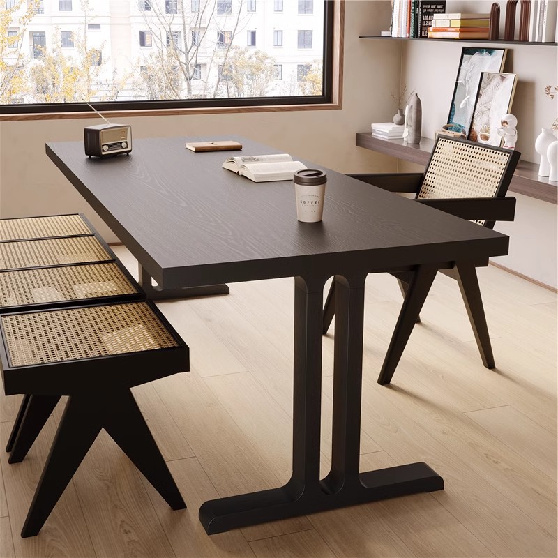 모든 단단한 나무 거실 책상 홈 블랙 간단한 현대 책상 통나무 대형 보드 테이블 학생 긴 책상