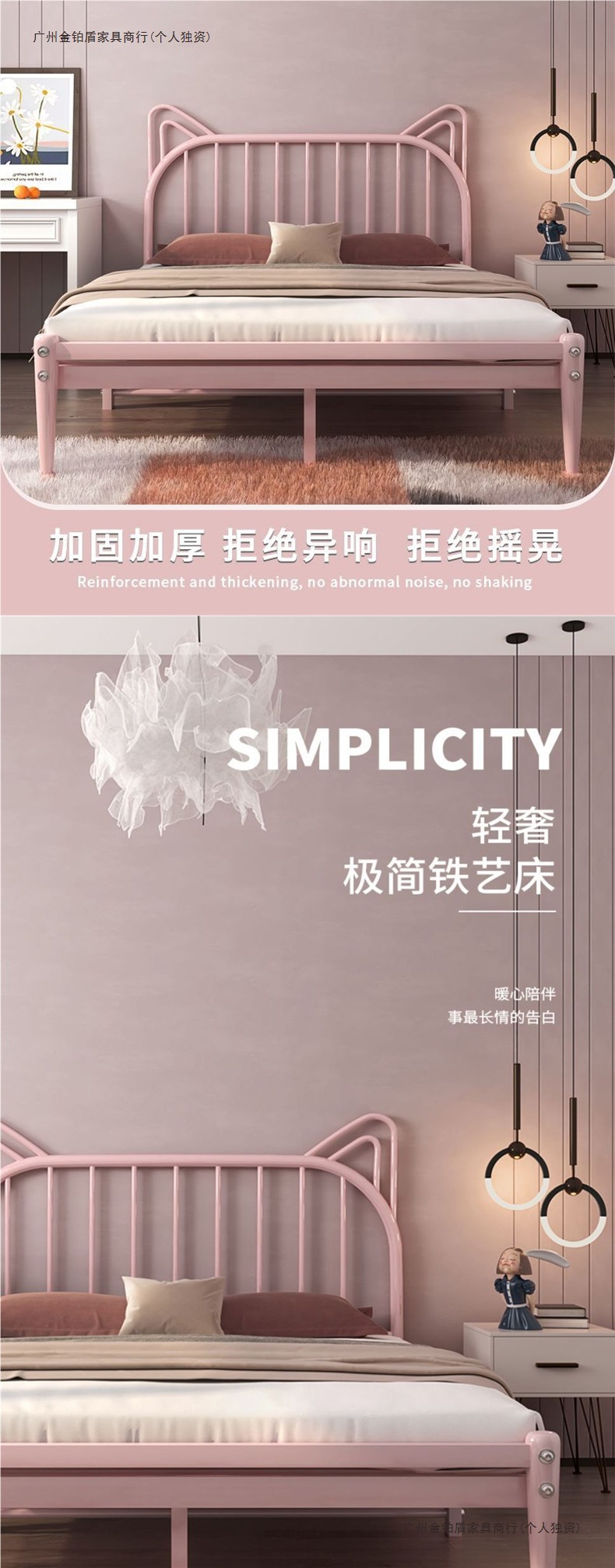유럽식 심플 철제 침대 1.5 더블 침대 1.8m 철제 침대 공주 스타일 임대 아파트 싱글 강화 철제 프레임스토어 가기
