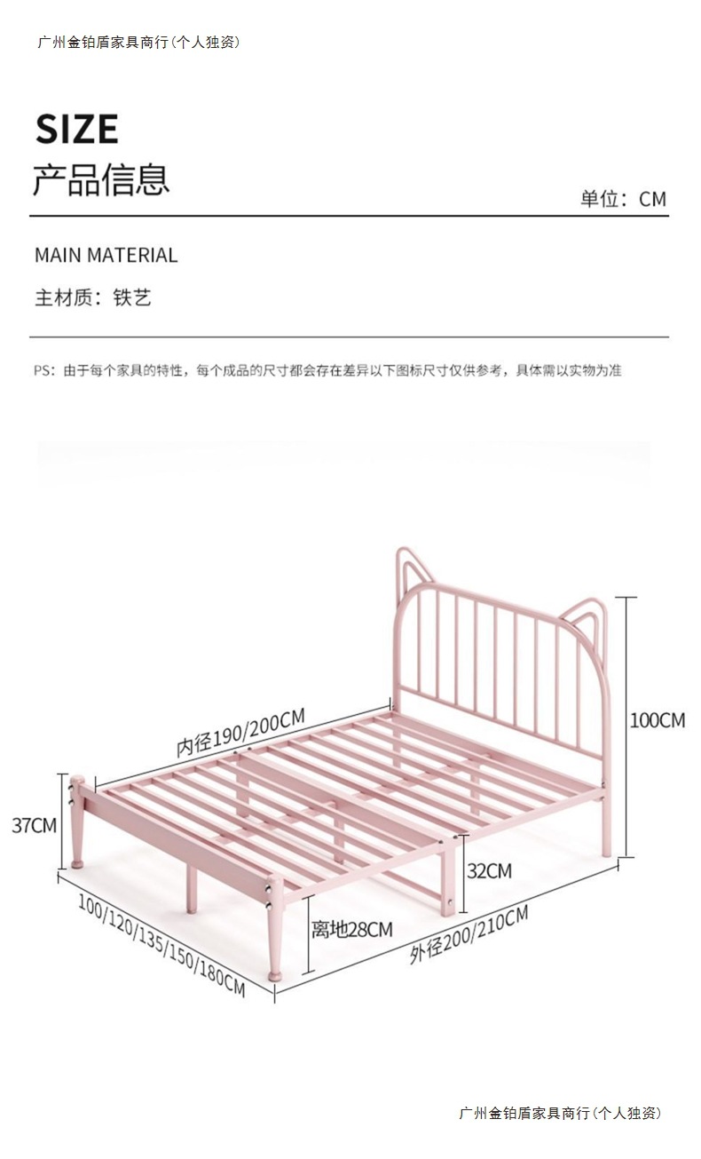 • 고양이귀 핑크 + 20cm 스프링 패드 - 행 프레임
