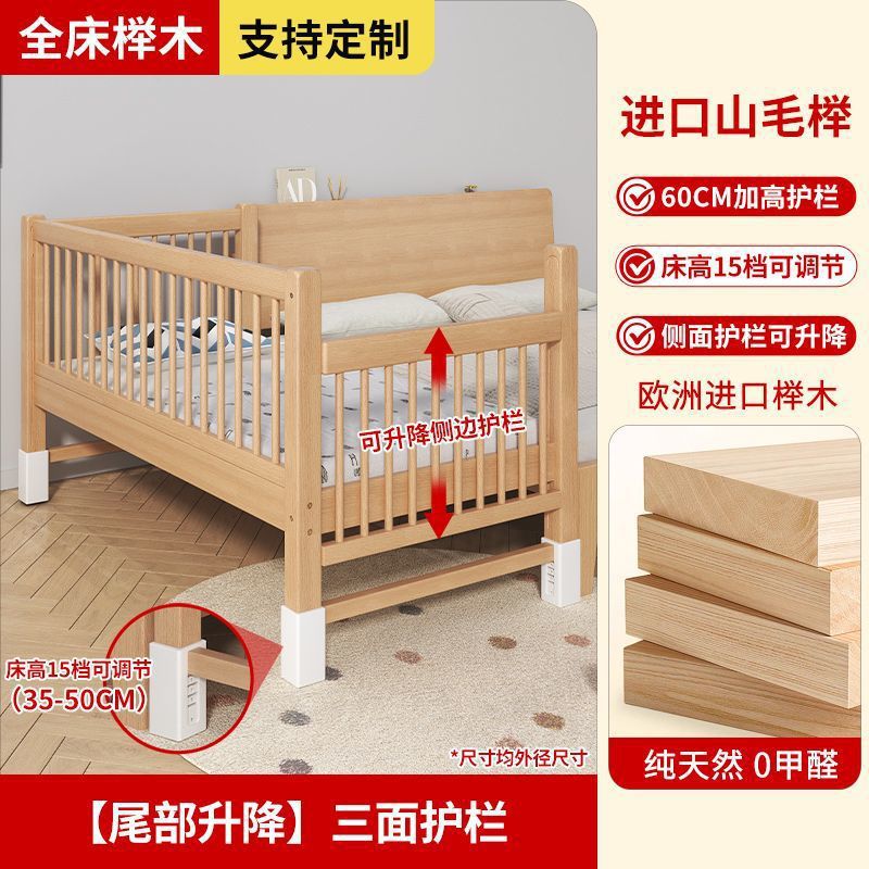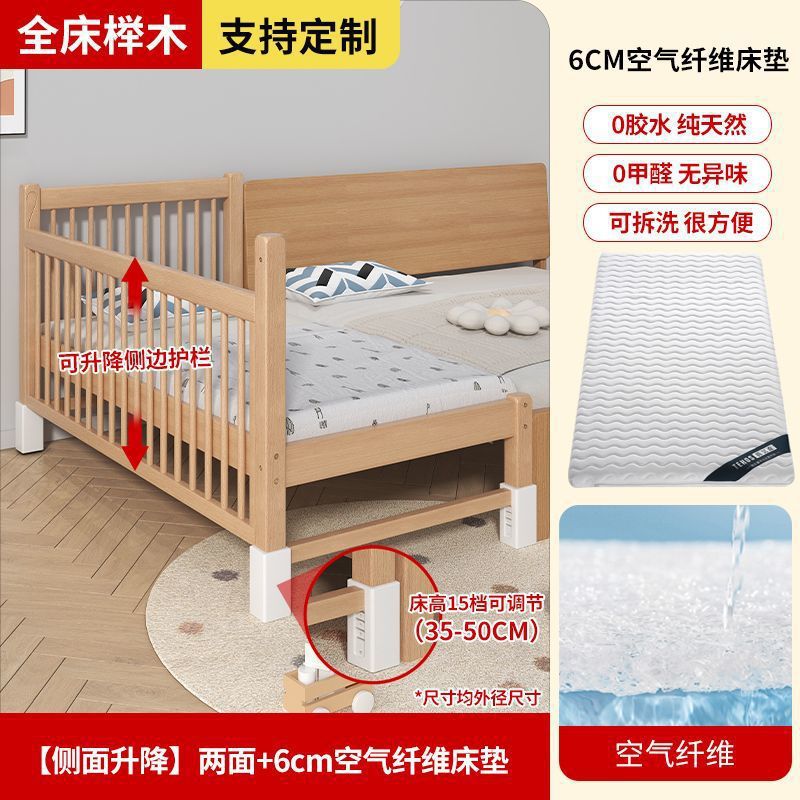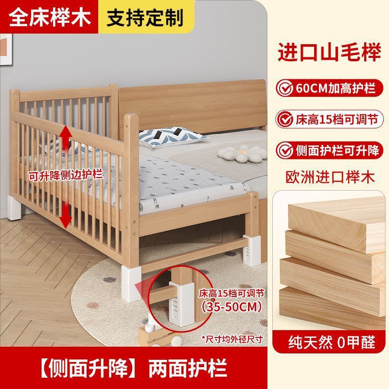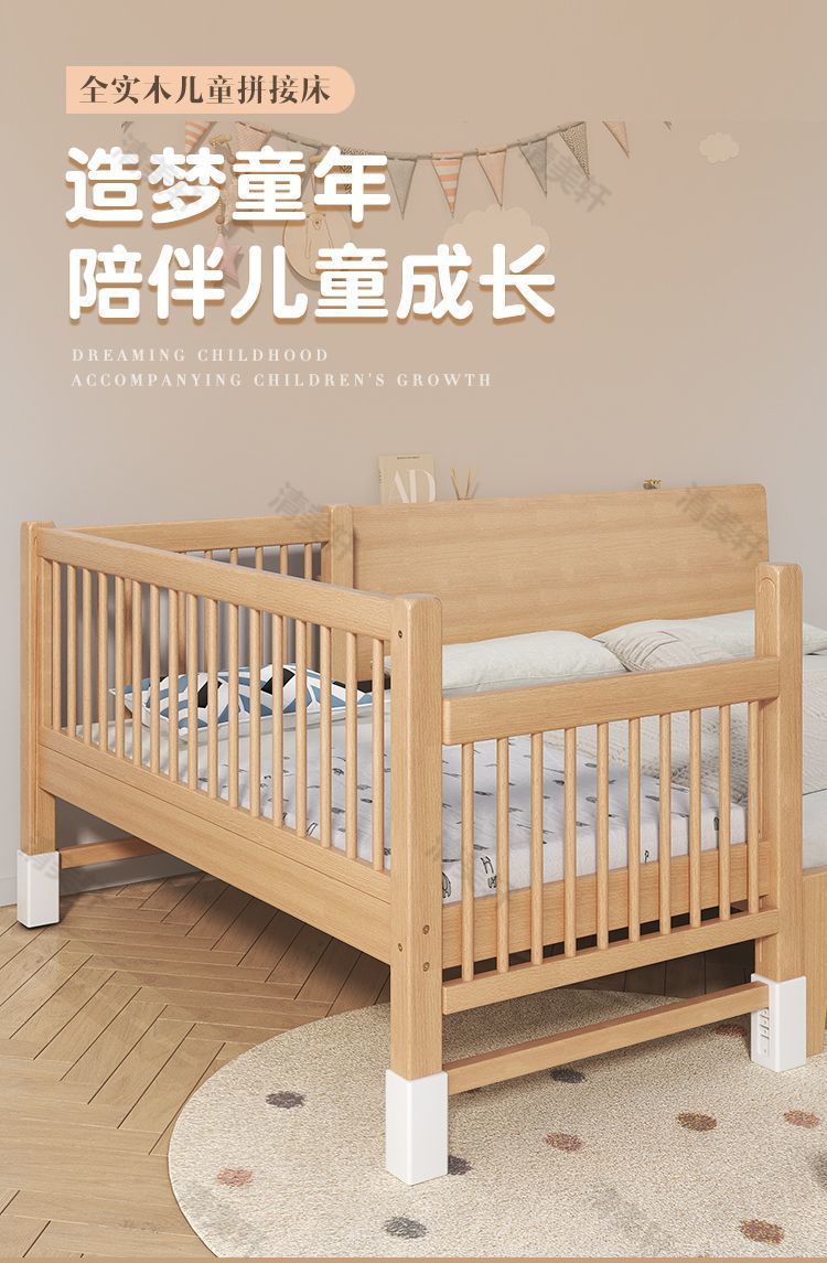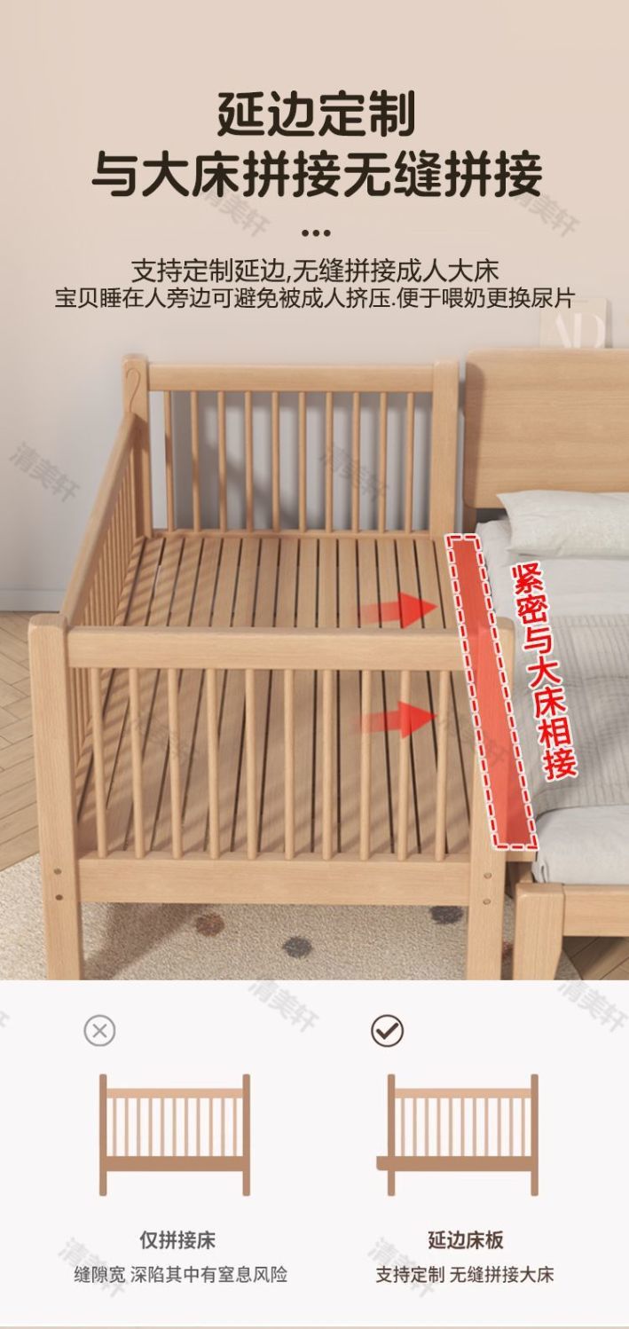 너도밤나무 어린이 접합 침대, 확장형 침대 옆 유아용 침대, 리프팅 가드레일, 소년용 아기 침대, 원목 아기 접합 대형 침대