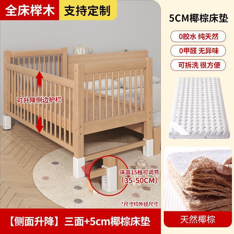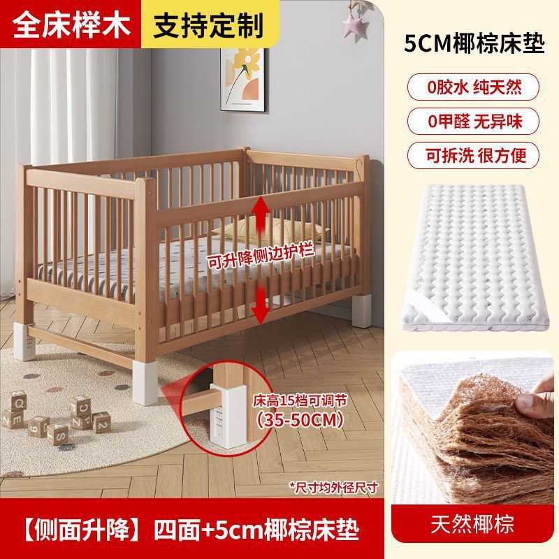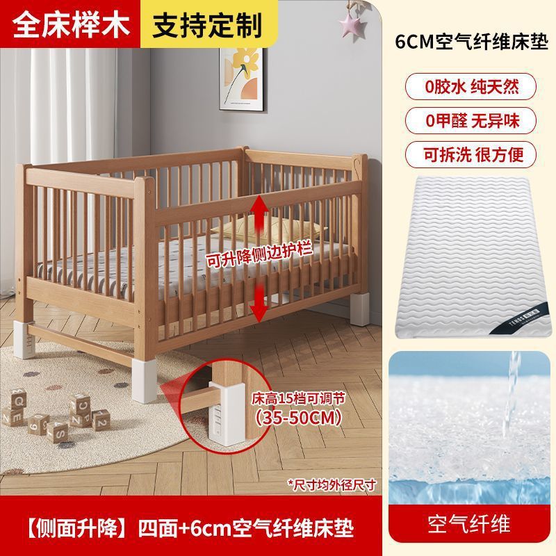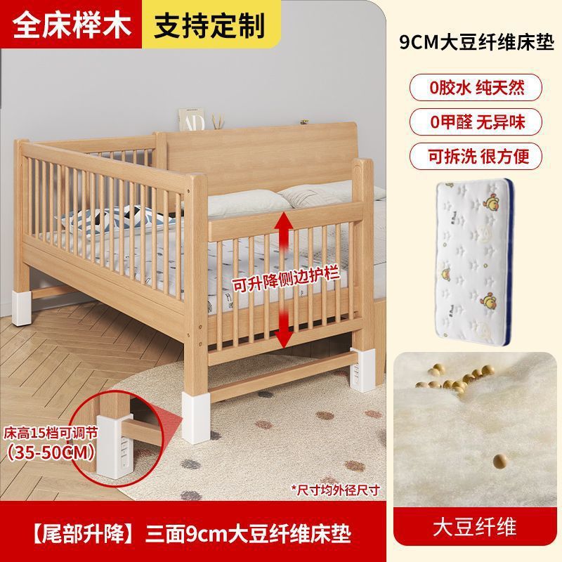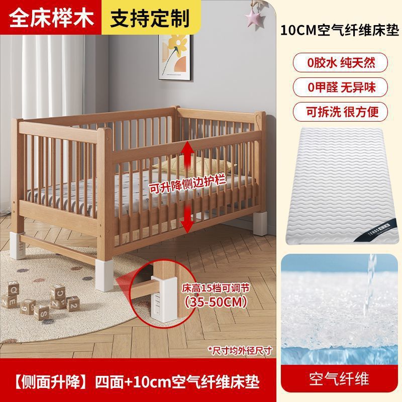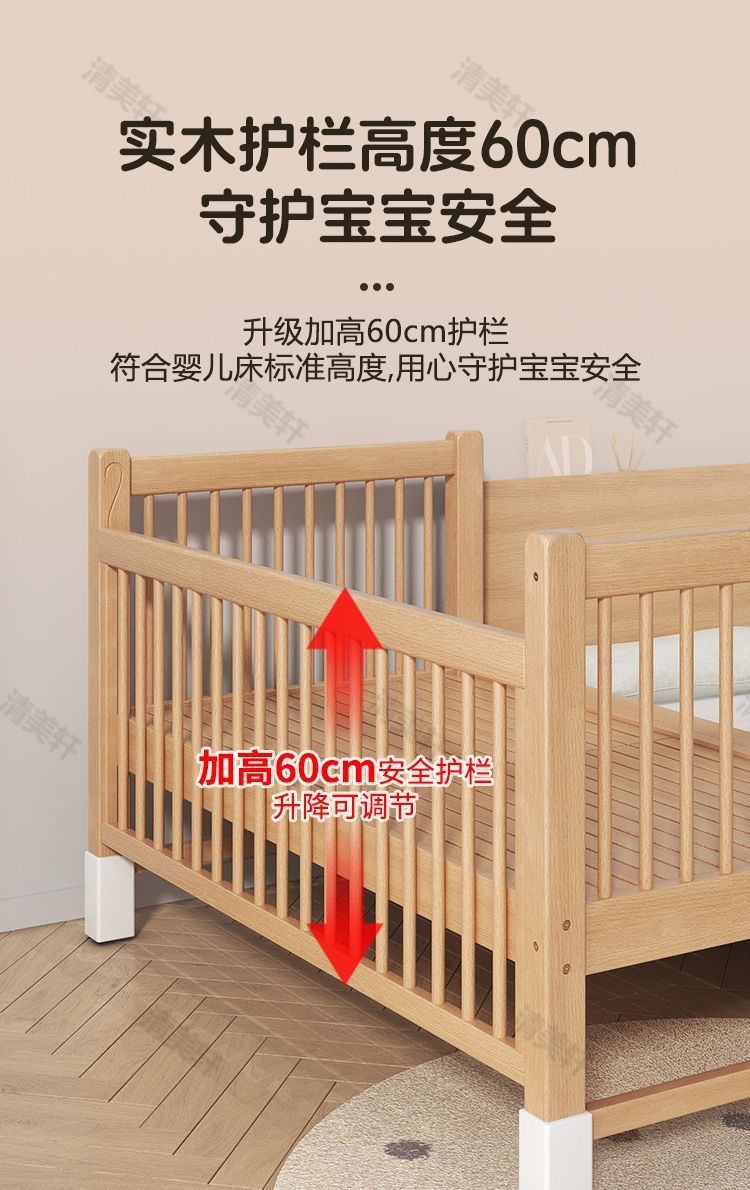 너도밤나무 어린이 접합 침대, 확장형 침대 옆 유아용 침대, 리프팅 가드레일, 소년용 아기 침대, 원목 아기 접합 대형 침대