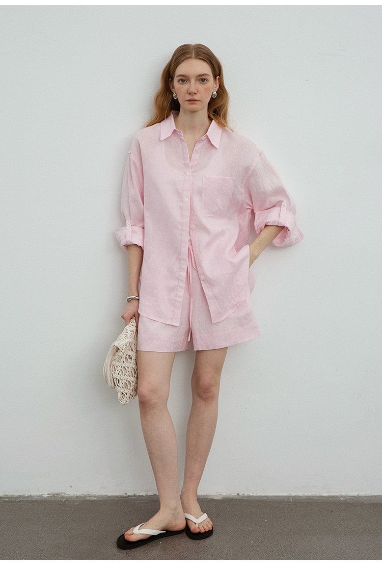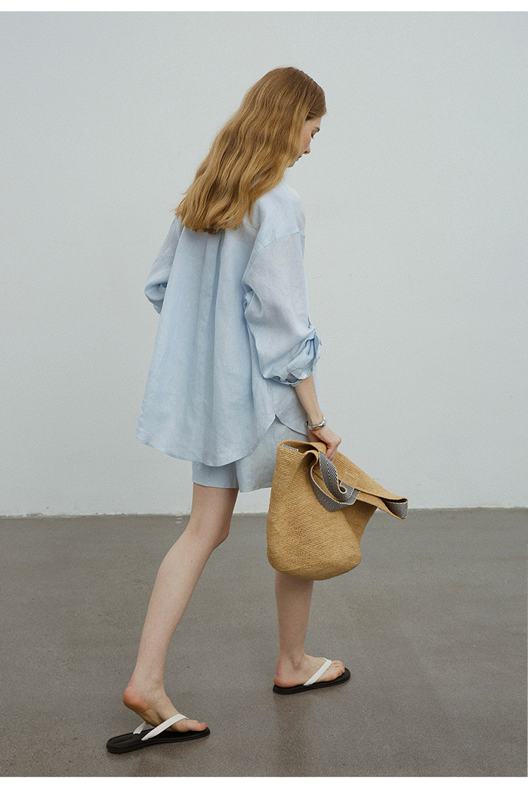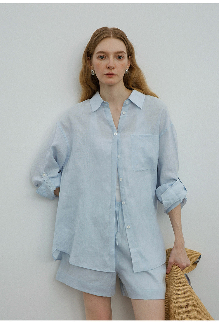 [매장의 명물] 100% 린넨 올드머니 스타일의 루즈핏 셔츠 + 100% 린넨 루즈핏 드로스트링 반바지