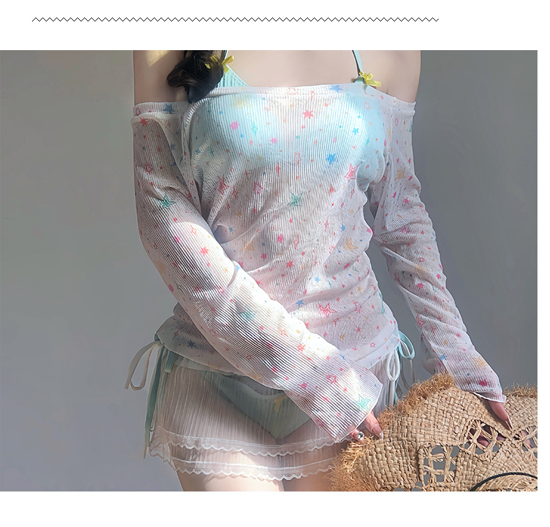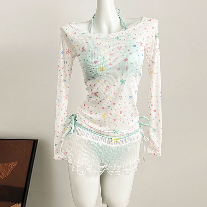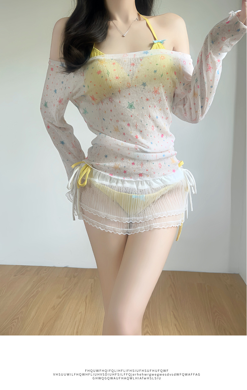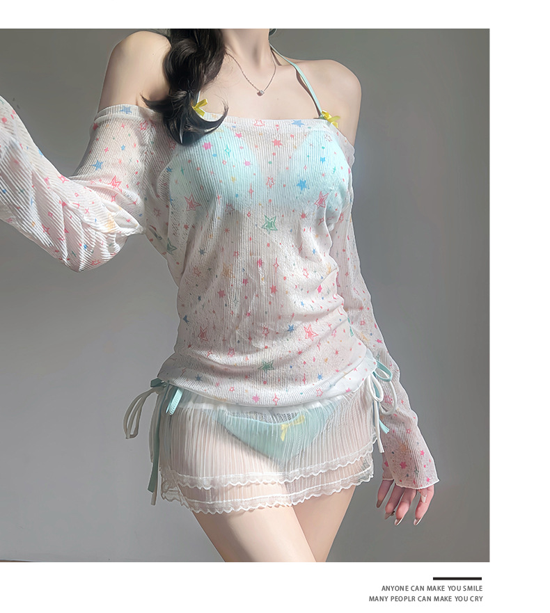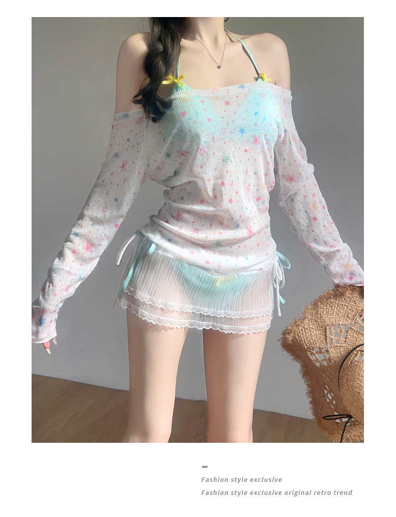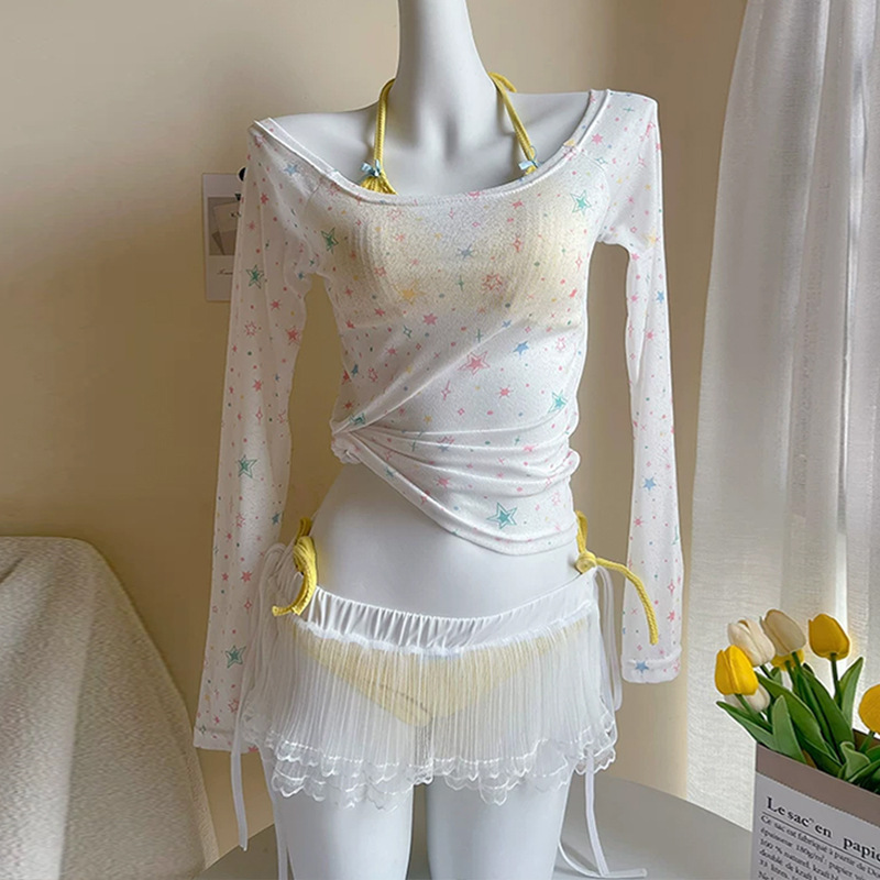 수영복 여성 스플릿 4 피스 긴 소매 비키니 달콤한 섹시한 뜨거운 소녀 해변 휴가 온천 수영복 도매