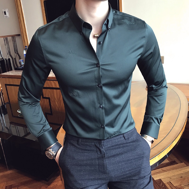 2025 봄, 가을 라이트 비즈니스 긴팔 셔츠 남성 자수 슬림 셔츠 캐주얼 잘 생긴 인기 하이 엔드 인치 셔츠