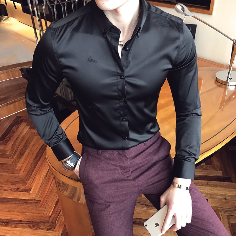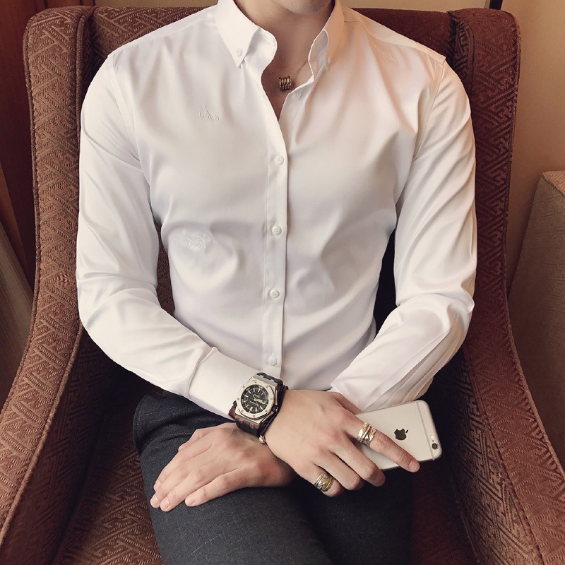 2025 봄, 가을 라이트 비즈니스 긴팔 셔츠 남성 자수 슬림 셔츠 캐주얼 잘 생긴 인기 하이 엔드 인치 셔츠스토어 가기
