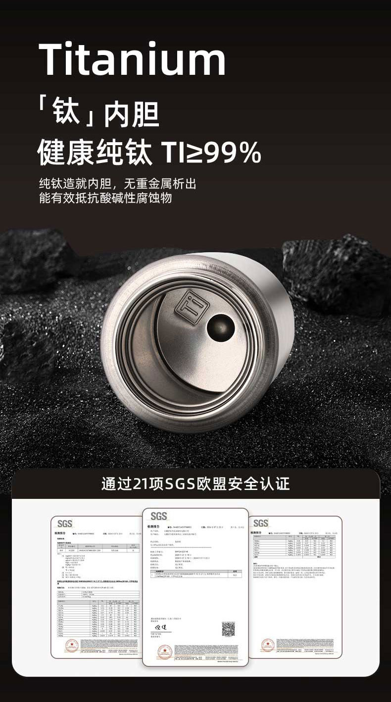 새로운 내부 및 외부 순수 티타늄 고가치 보온병 컵 비즈니스 라이트 럭셔리 선물 스트레이트 컵 남성과 여성을위한 고급 워터 컵 도매스토어 가기