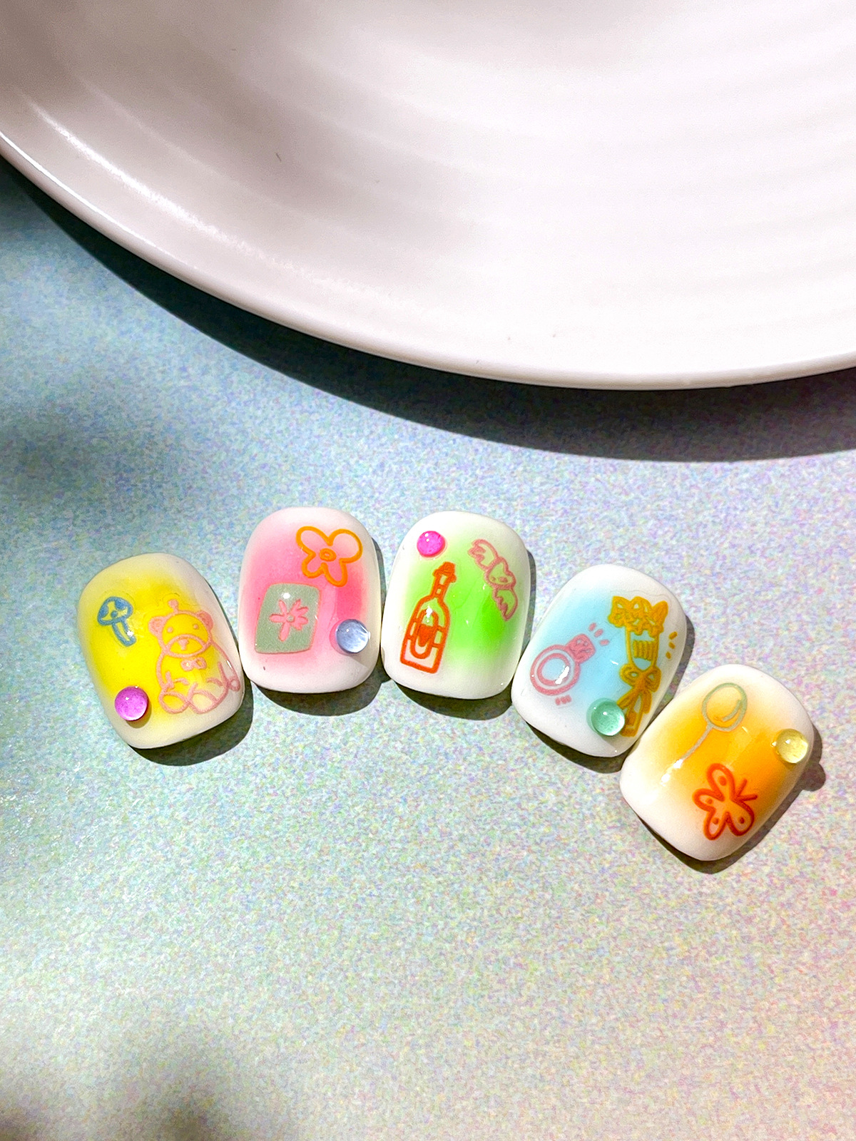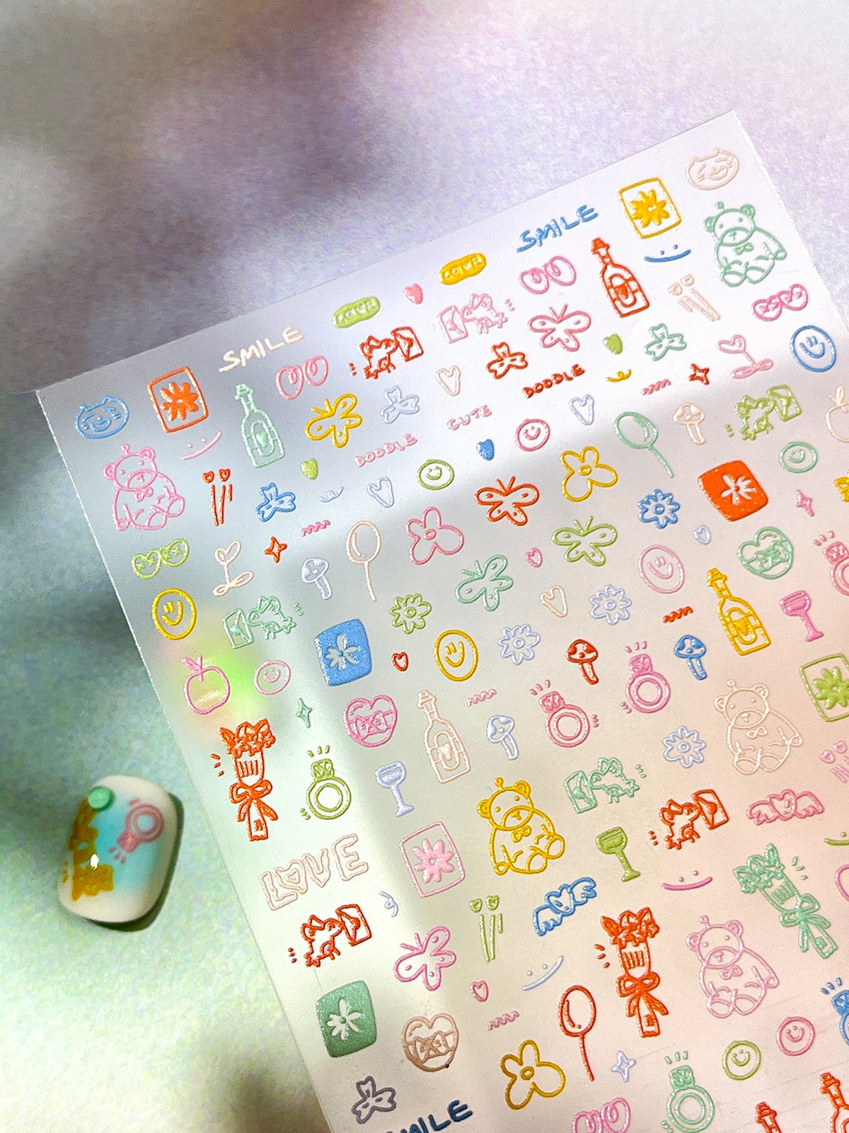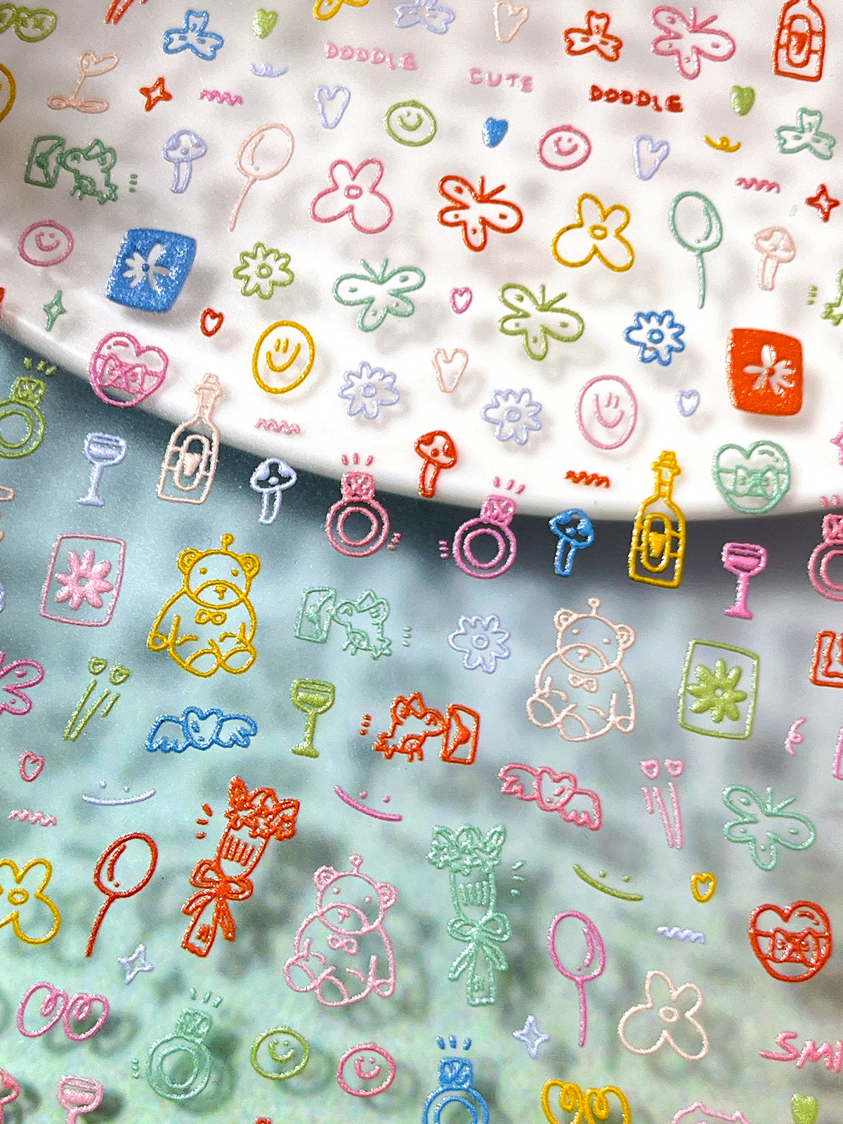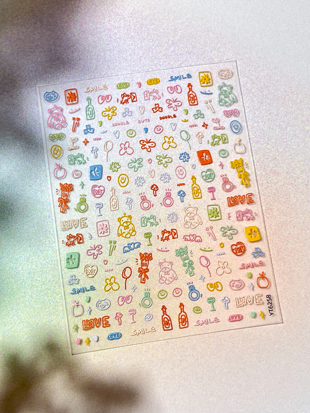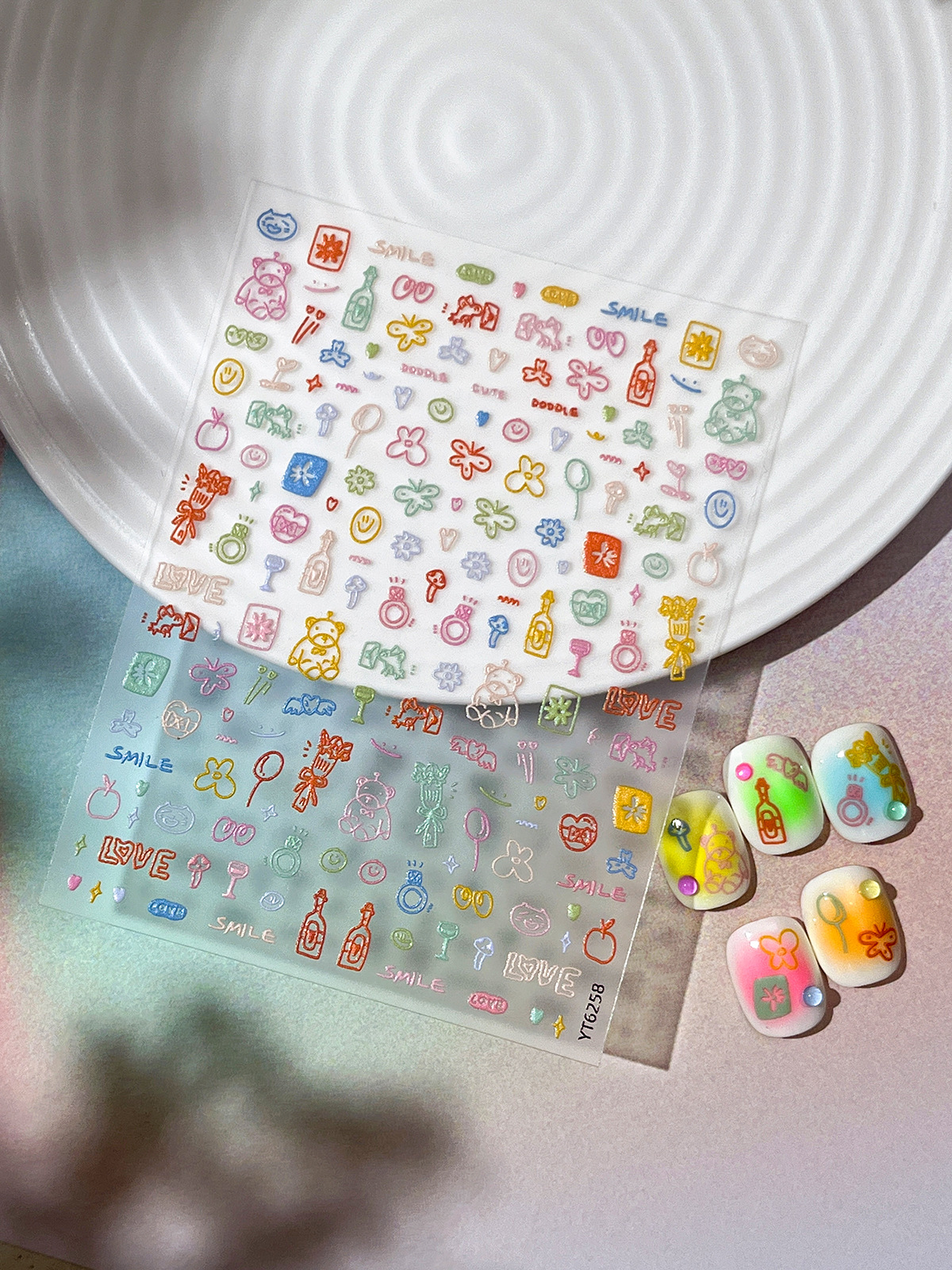 YITU 엔드로미드 양각 낙서 라인 네일 아트 스티커 간단한 다채로운 여름 작은 신선한 장식 스티커 YT6258