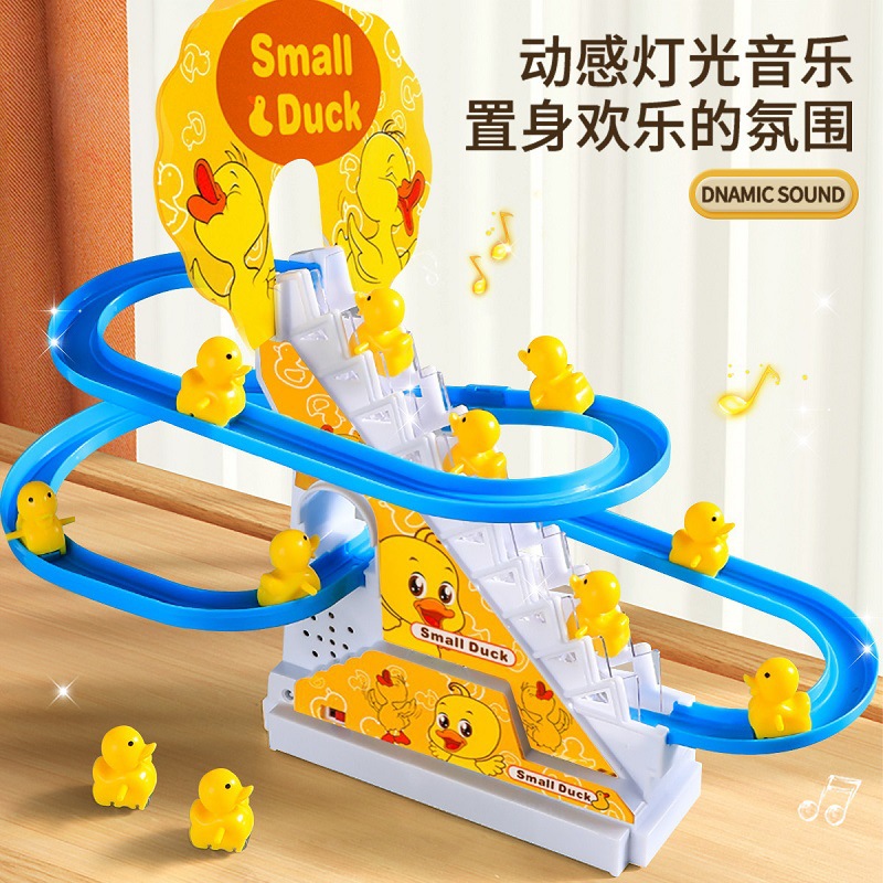계단 오리 전기 장난감 작은 오리 계단을 오르는 철도 차량 1-3 세 아기 아기 어린이 장난감 작은 선물