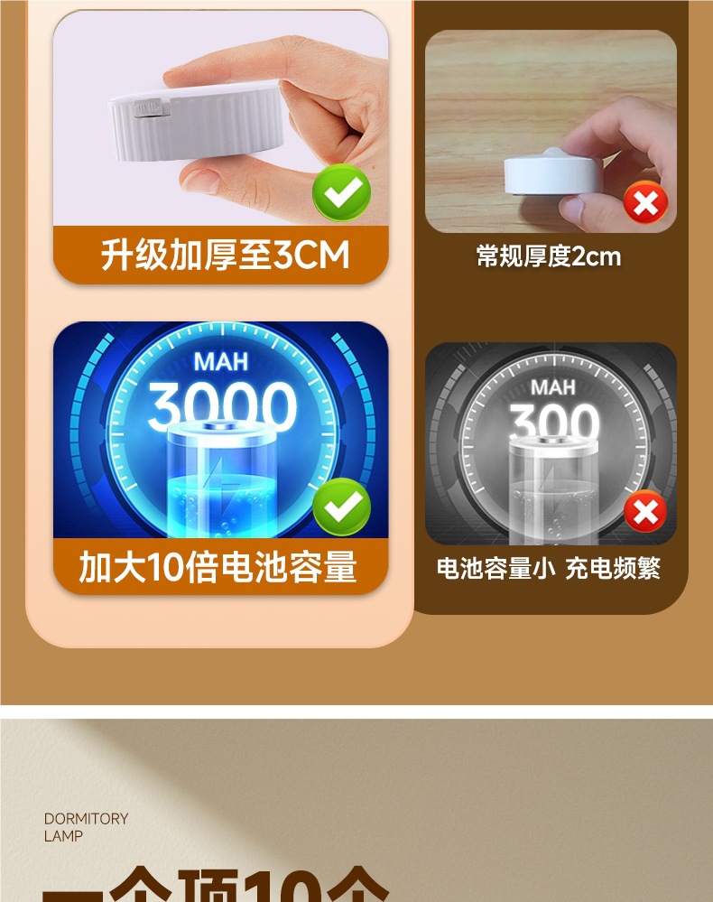 • 중성광 인체유도 [새로 업그레이드된 3000mAh] 1팩에 [3M 자기접착제]가 포함되어 있습니다.