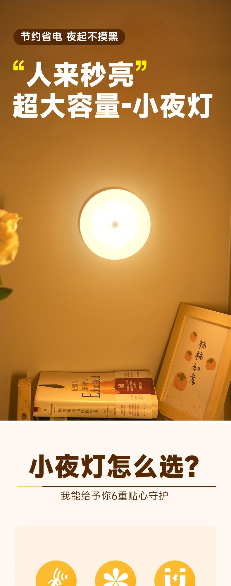 • 따뜻한 빛 인체 센서 [새로 업그레이드된 3000mAh] 2팩 무료 [3M 자기 접착 뒷면]