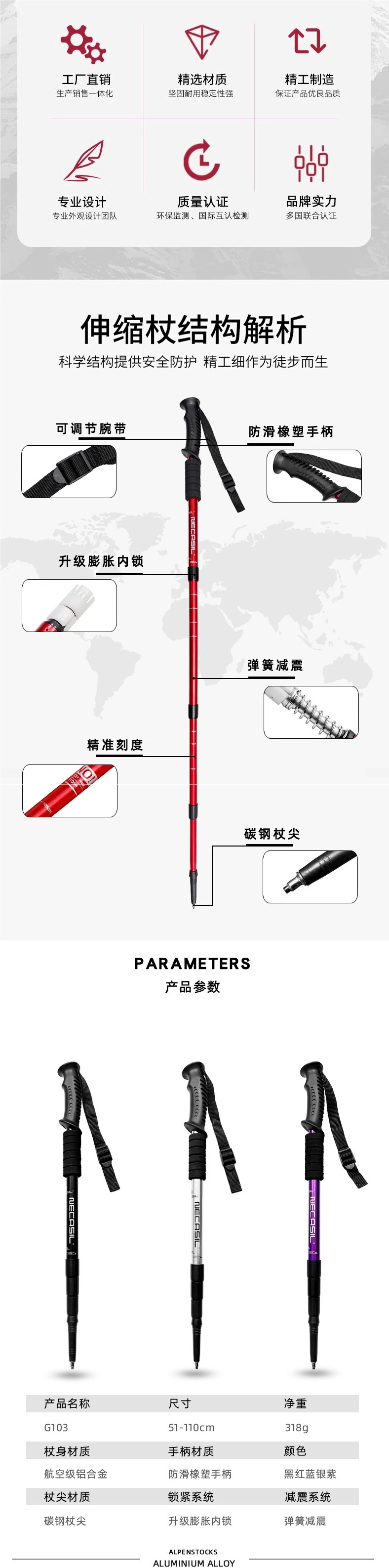 • 4단 텔레스코픽 [독일 주조 스프링] 탄소강 팁, 안정적이고 미끄럼 방지 - T 핸들 레드