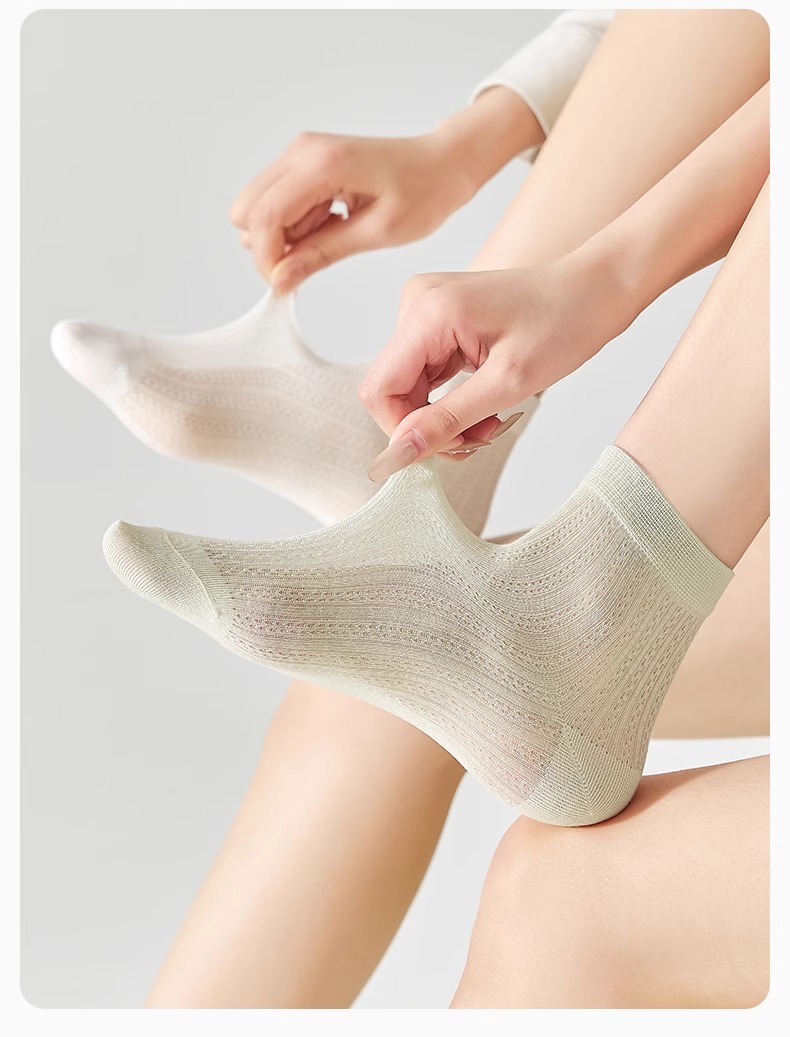 양말 여성 여름 얇은 양말 뼈없는 뽕나무 실크 중간 튜브 양말 항균 메쉬 통기성 흰색 발레 스타일 여름스토어 가기