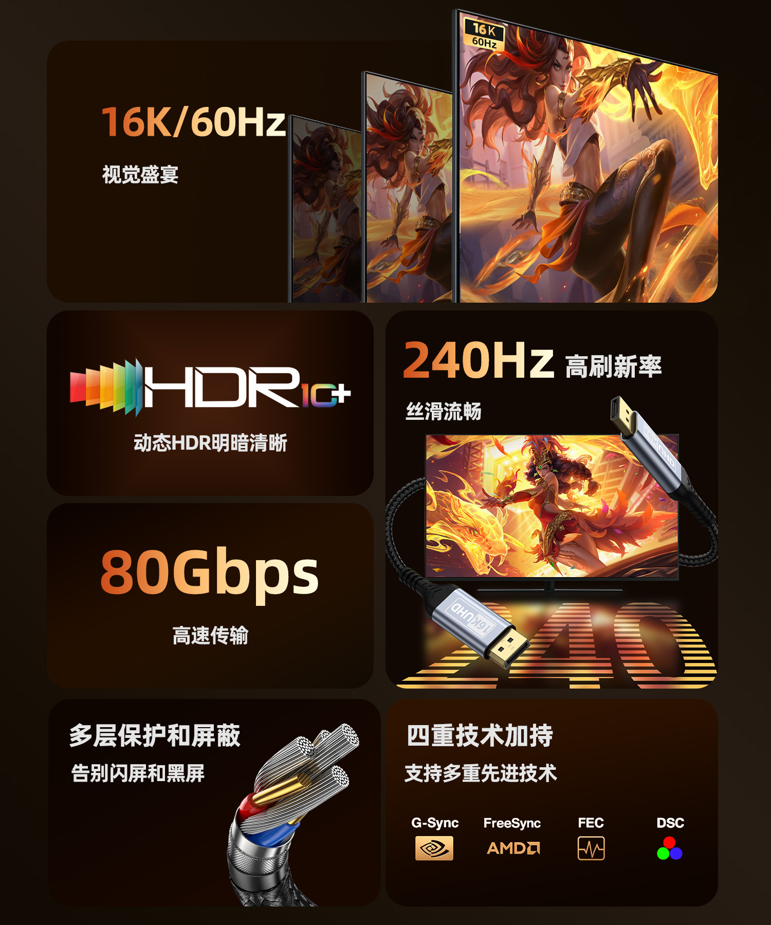 DP 케이블 2.1 프로페셔널 버전 16K HD 비디오 케이블 8K4K240Hz DP 컴퓨터 그래픽 카드-모니터 케이블스토어 가기