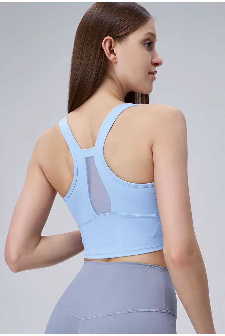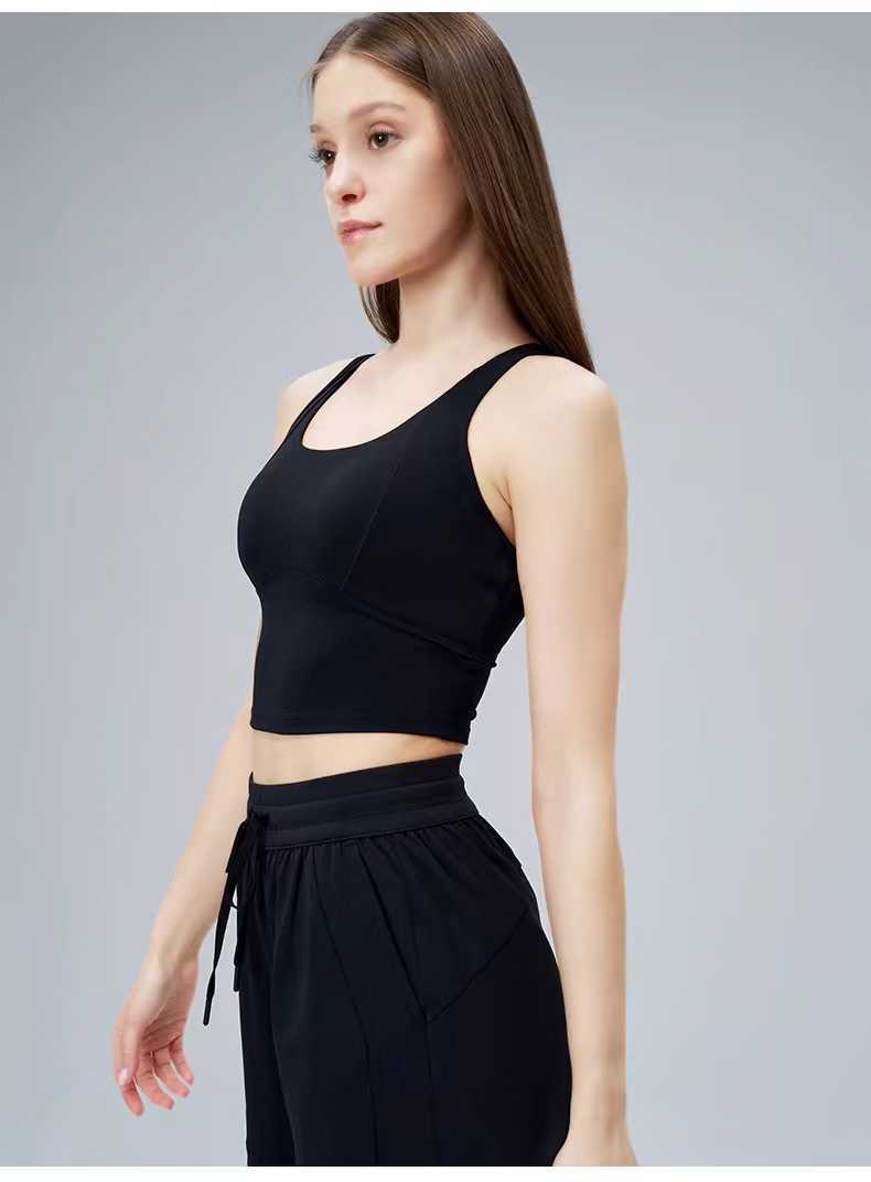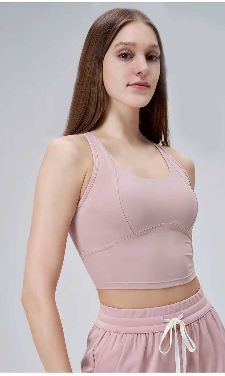 여름 스포츠 조끼 일체형 고정 컵 타이트 슬리밍 피트니스 브라 I자형 아름다운 등 요가 속옷 여성용