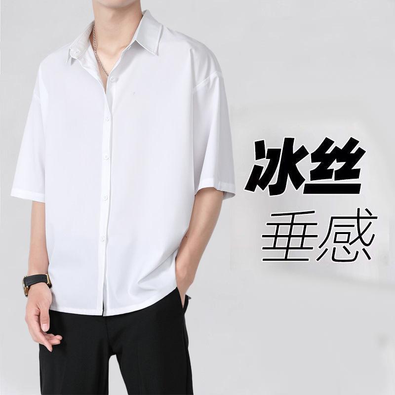 아이스 실크 반팔 셔츠 남성 여름 얇은 루즈 트렌디 브랜드 핸섬 재킷 캐주얼 여름 드레이프 셔츠 다용도