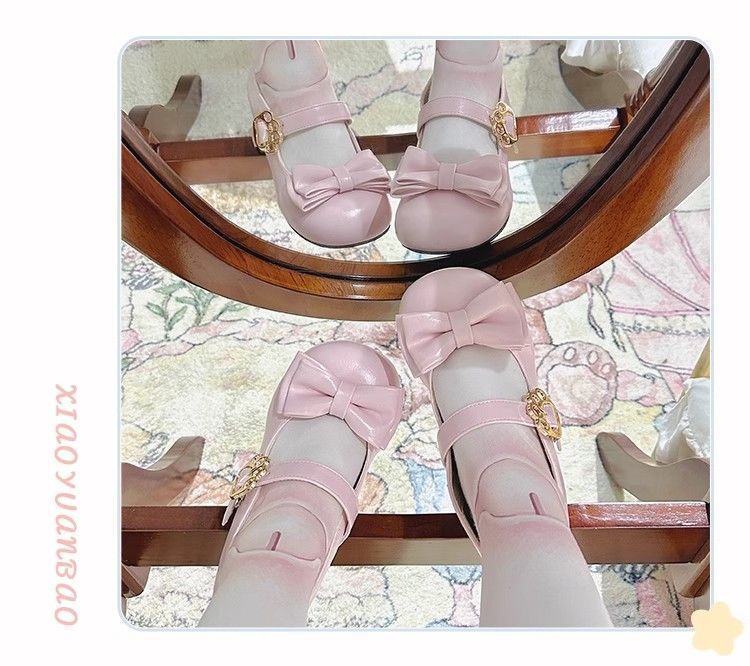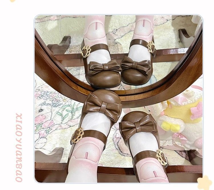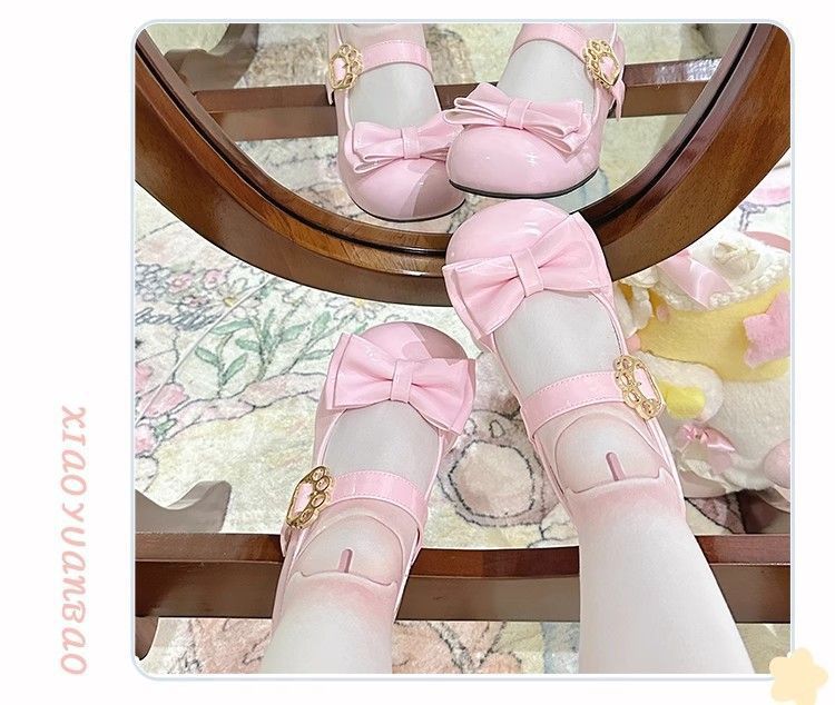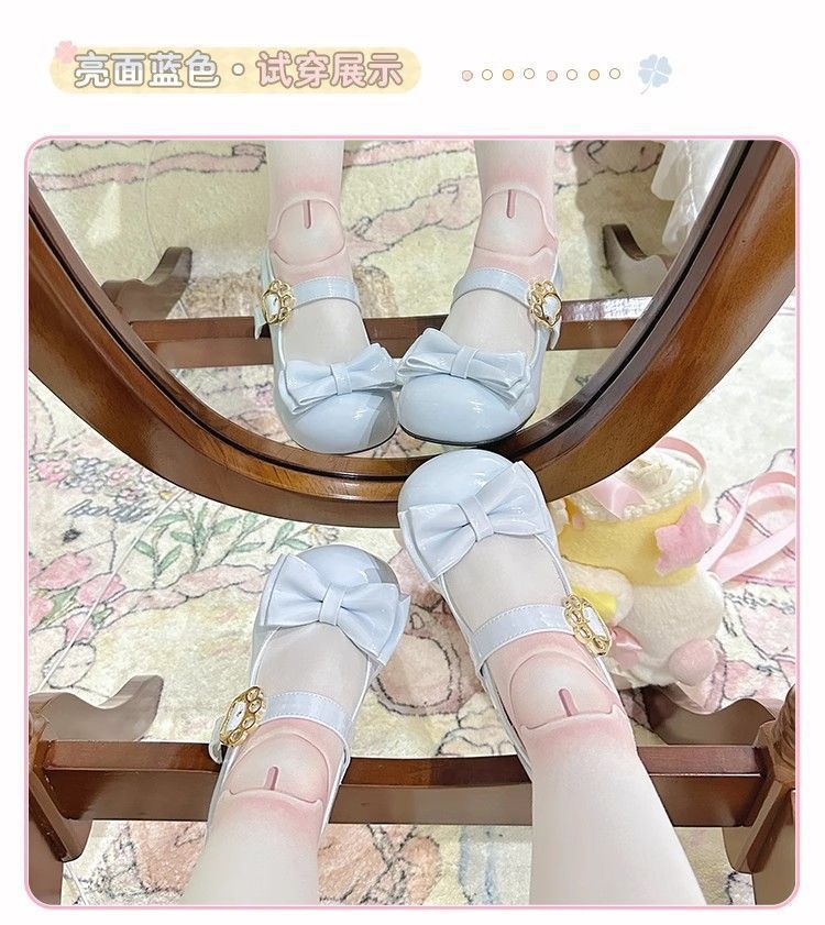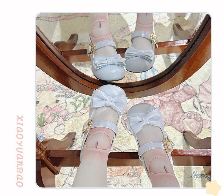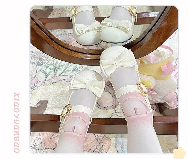 [야옹샤오위안] 중저힐 로리타 슈즈, 리본매듭, 다용도 슈즈, 귀여운 여아 가죽슈즈스토어 가기