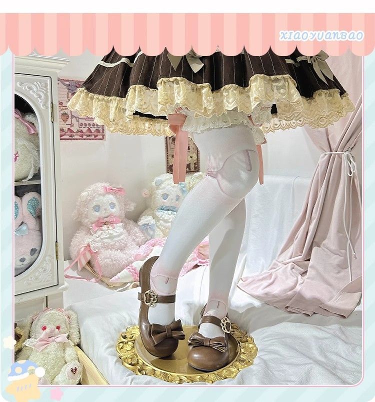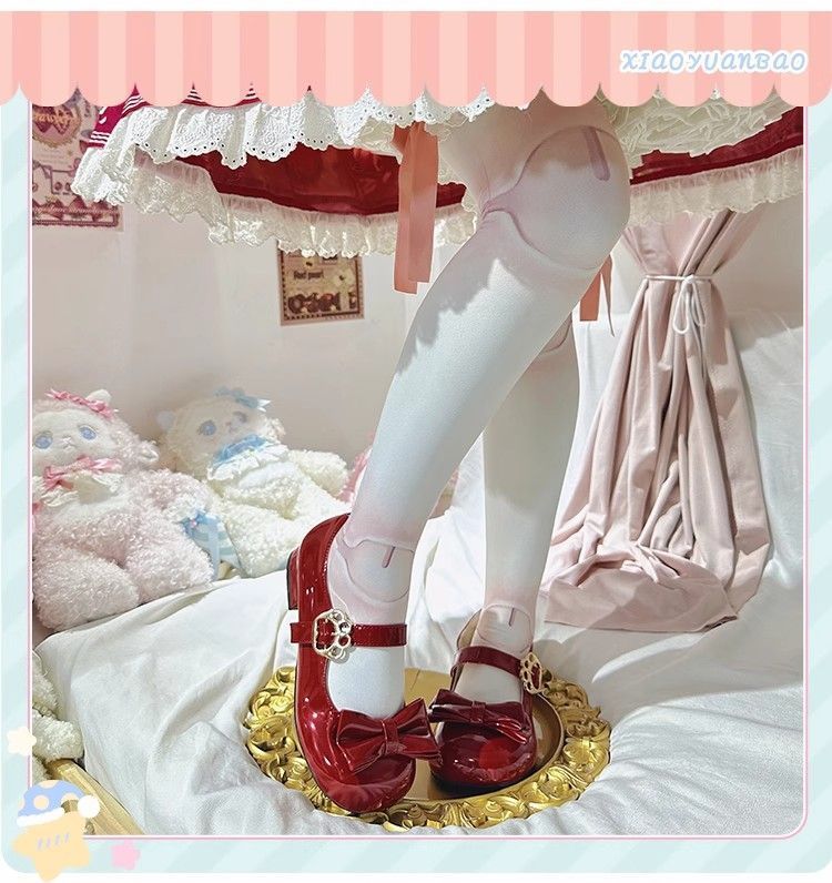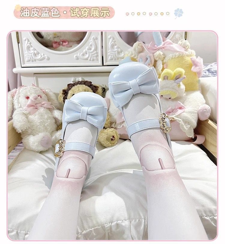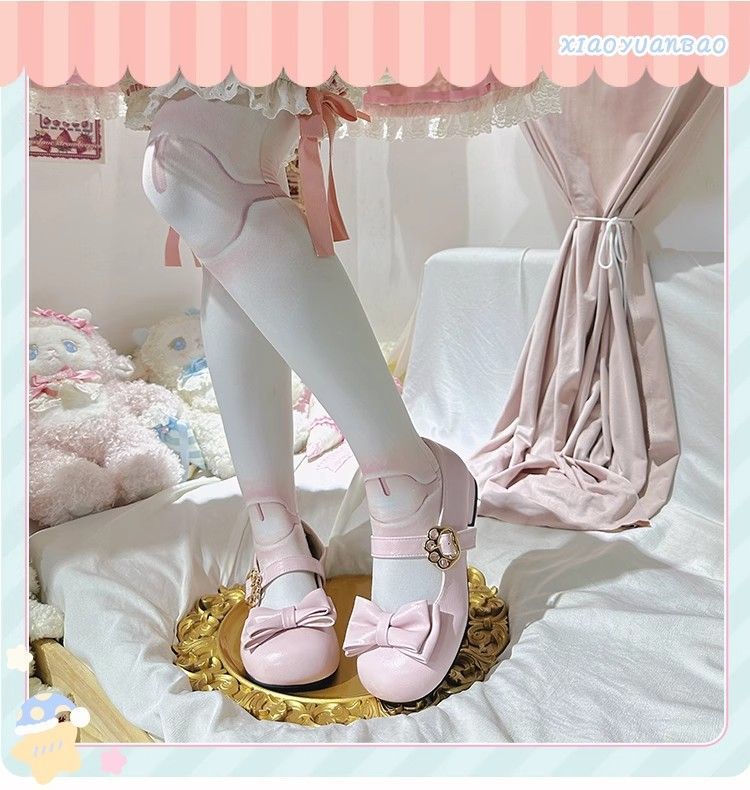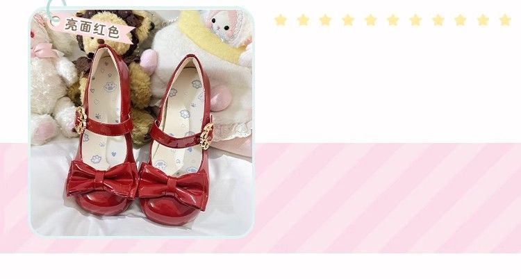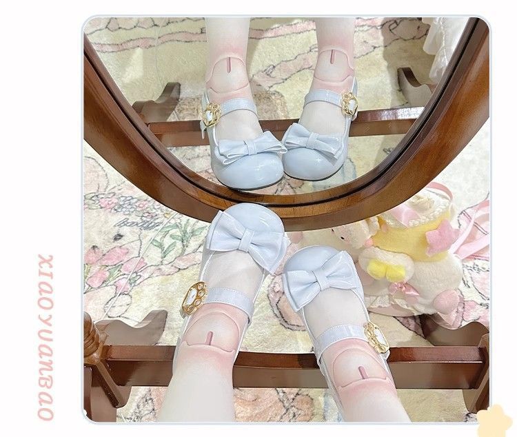 [야옹샤오위안] 중저힐 로리타 슈즈, 리본매듭, 다용도 슈즈, 귀여운 여아 가죽슈즈스토어 가기