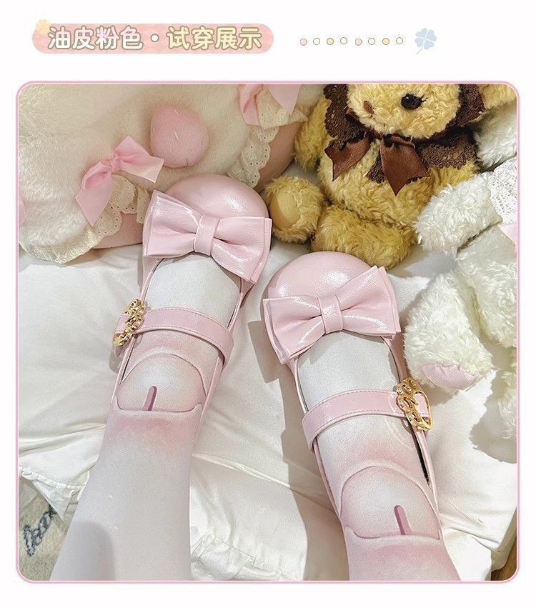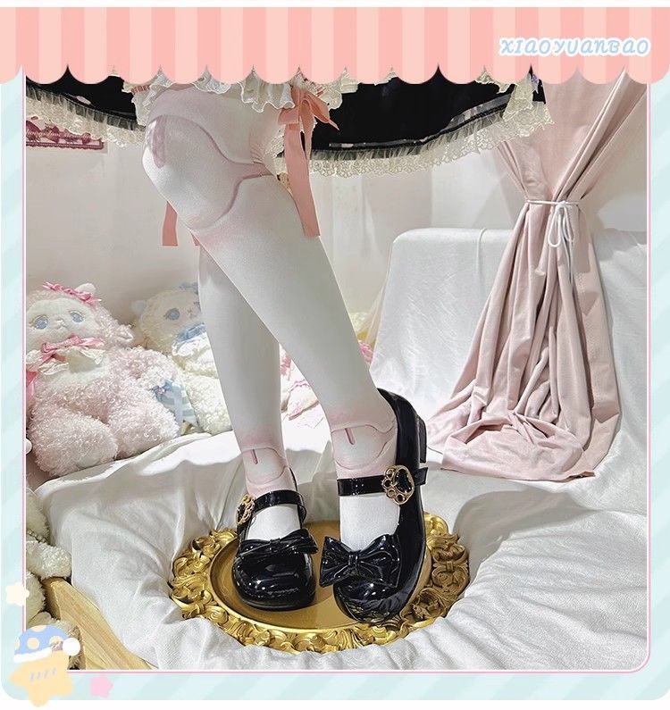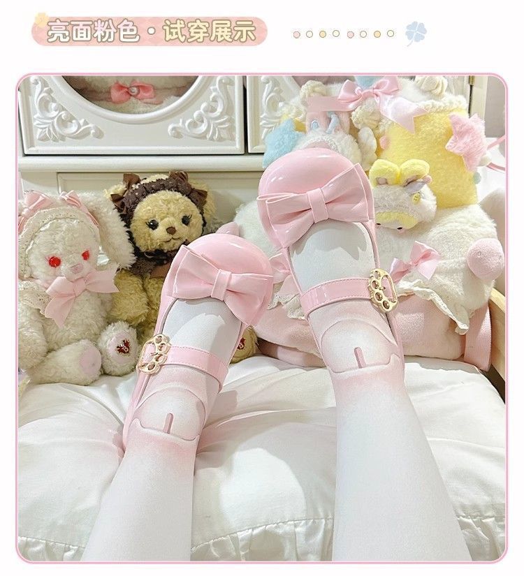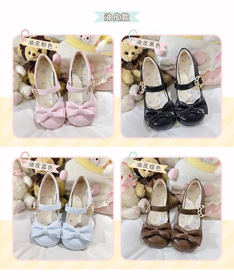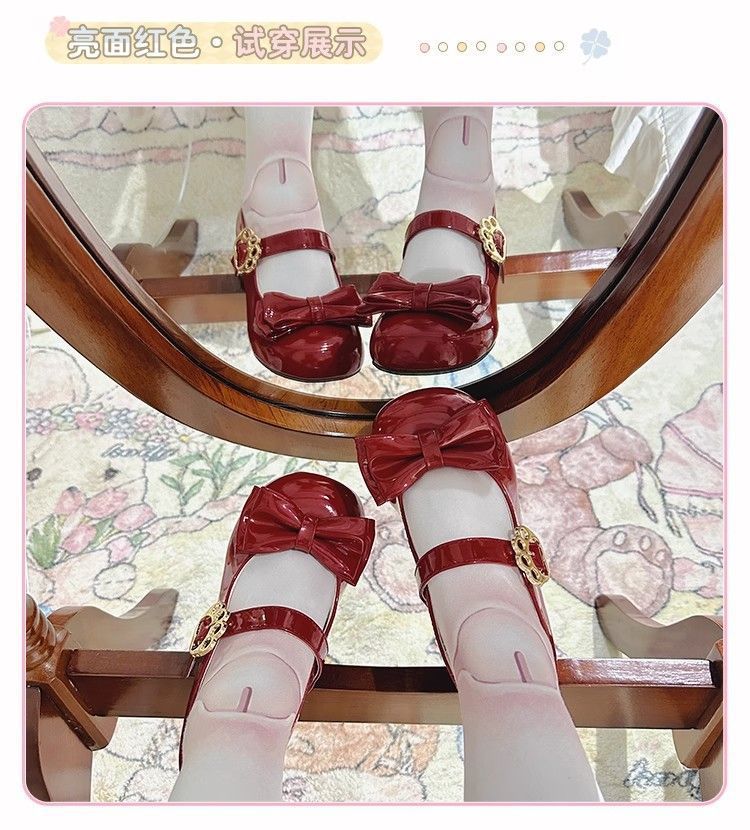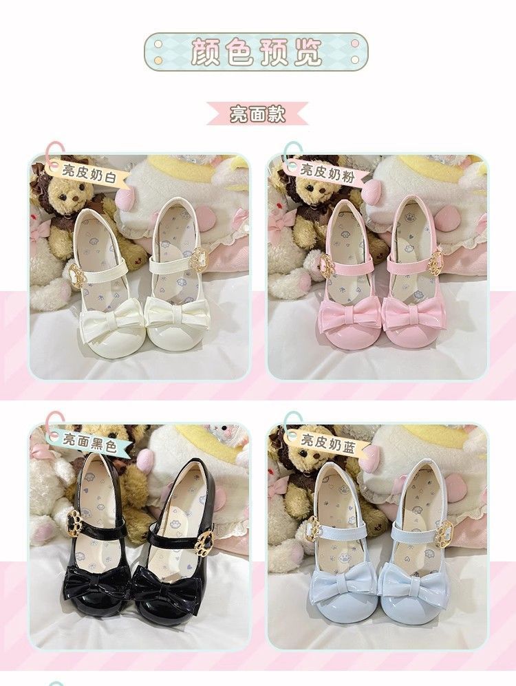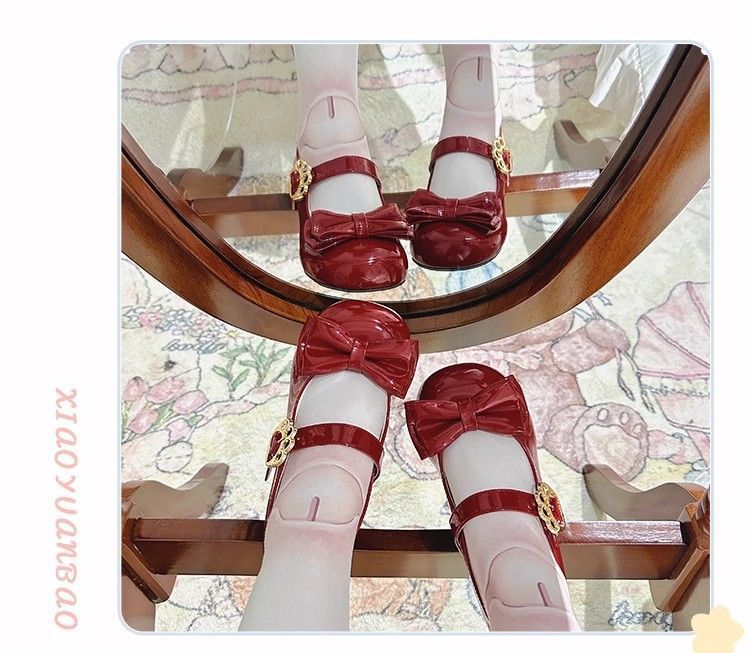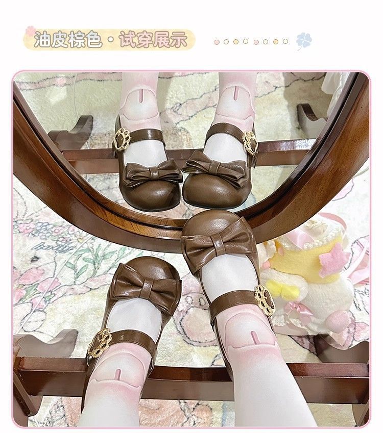 [야옹샤오위안] 중저힐 로리타 슈즈, 리본매듭, 다용도 슈즈, 귀여운 여아 가죽슈즈