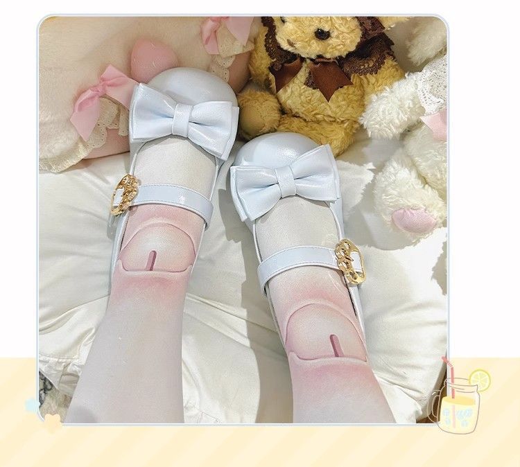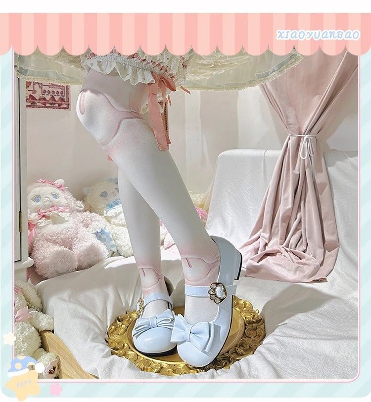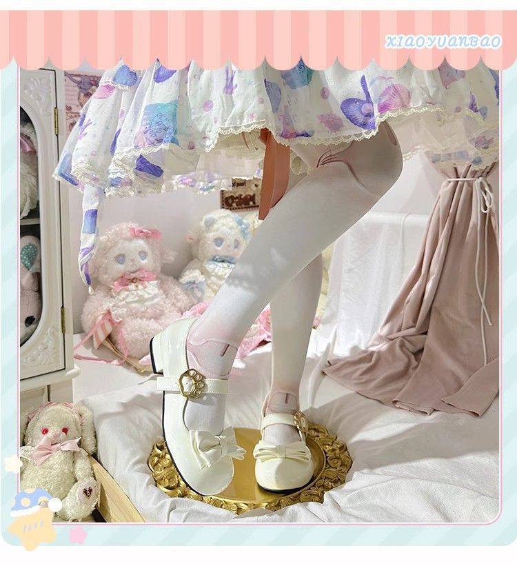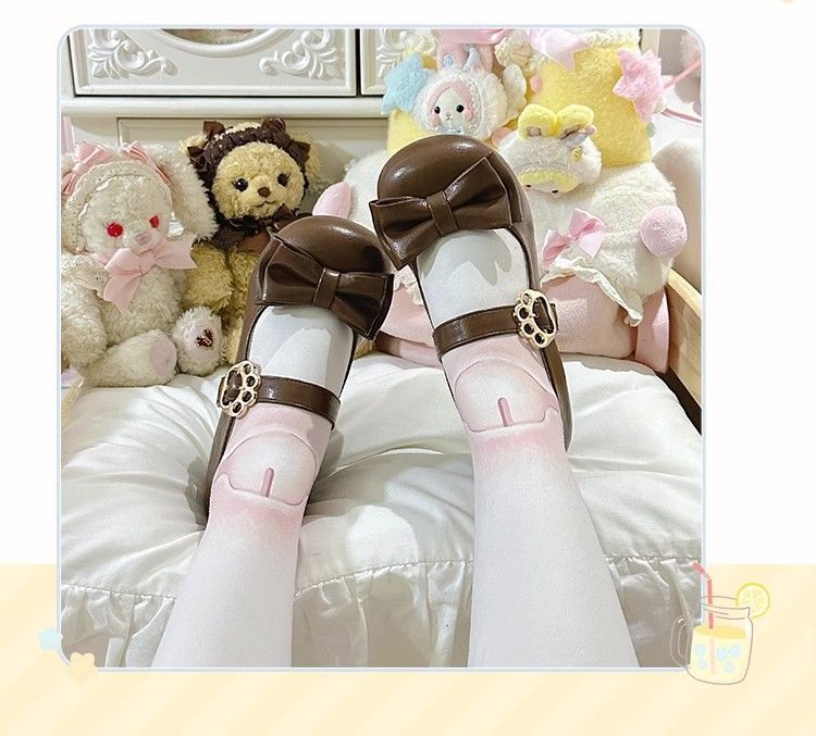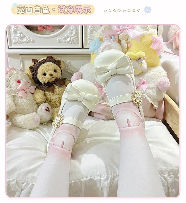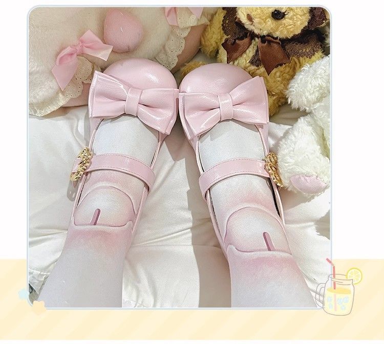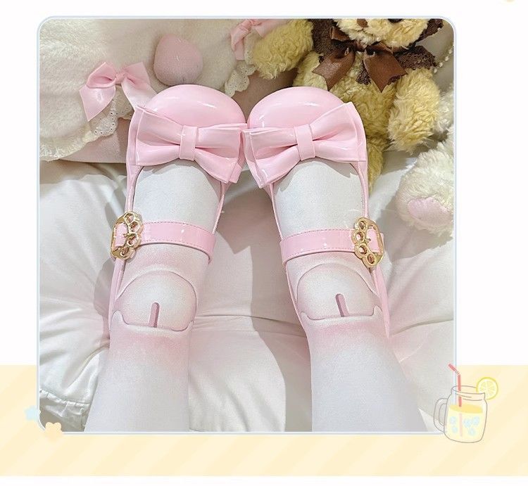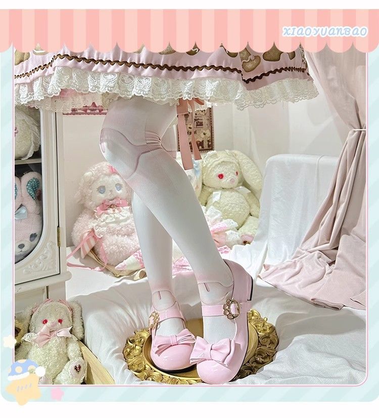 [야옹샤오위안] 중저힐 로리타 슈즈, 리본매듭, 다용도 슈즈, 귀여운 여아 가죽슈즈