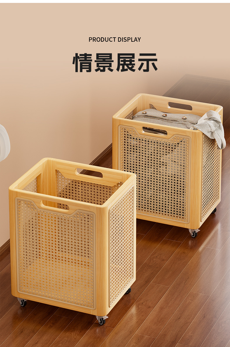 단단한 나무 등나무 더러운 옷 바구니, 욕실 세탁 바구니, 더러운 옷 보관함, 욕실 목욕 의류 보관 바구니스토어 가기