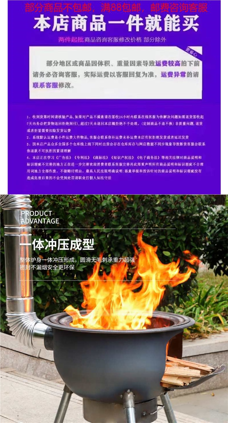 • 회색 상자가 포함된 두꺼운 버전: 48cm+두께 2.7+난로 링 3개+냄비+뚜껑(스테인리스 굴뚝 선물 패키지)