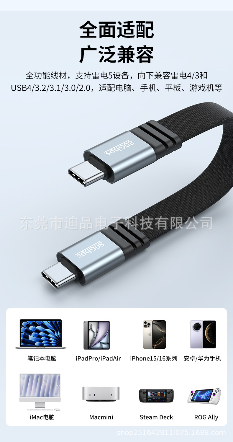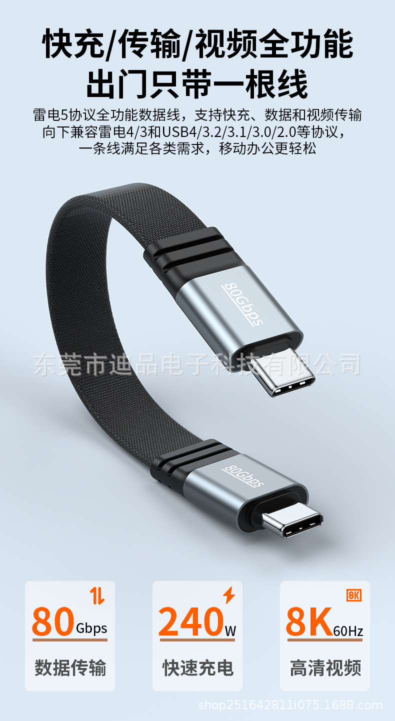 240W 듀얼 타입 풀 기능 모바일 하드 드라이브 데이터 케이블 남성-남성 Thunderbolt 5 단선 소프트 80Gbps 스크린 프로젝션