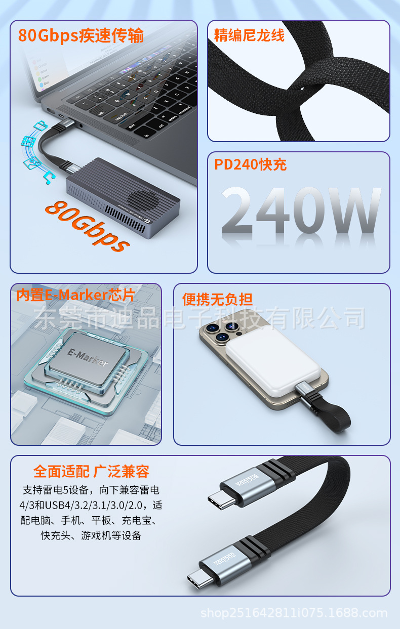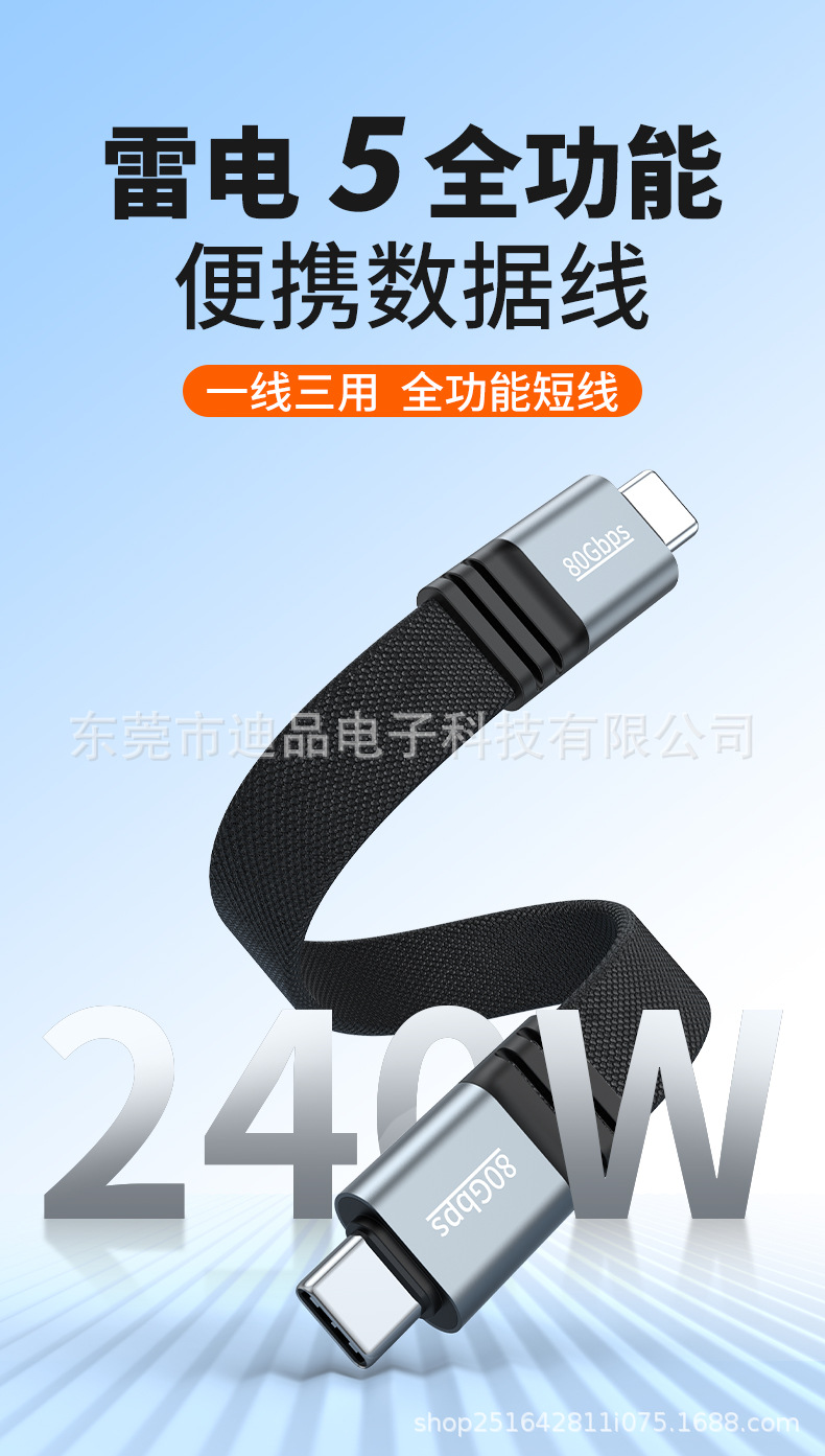 240W 듀얼 타입 풀 기능 모바일 하드 드라이브 데이터 케이블 남성-남성 Thunderbolt 5 단선 소프트 80Gbps 스크린 프로젝션스토어 가기
