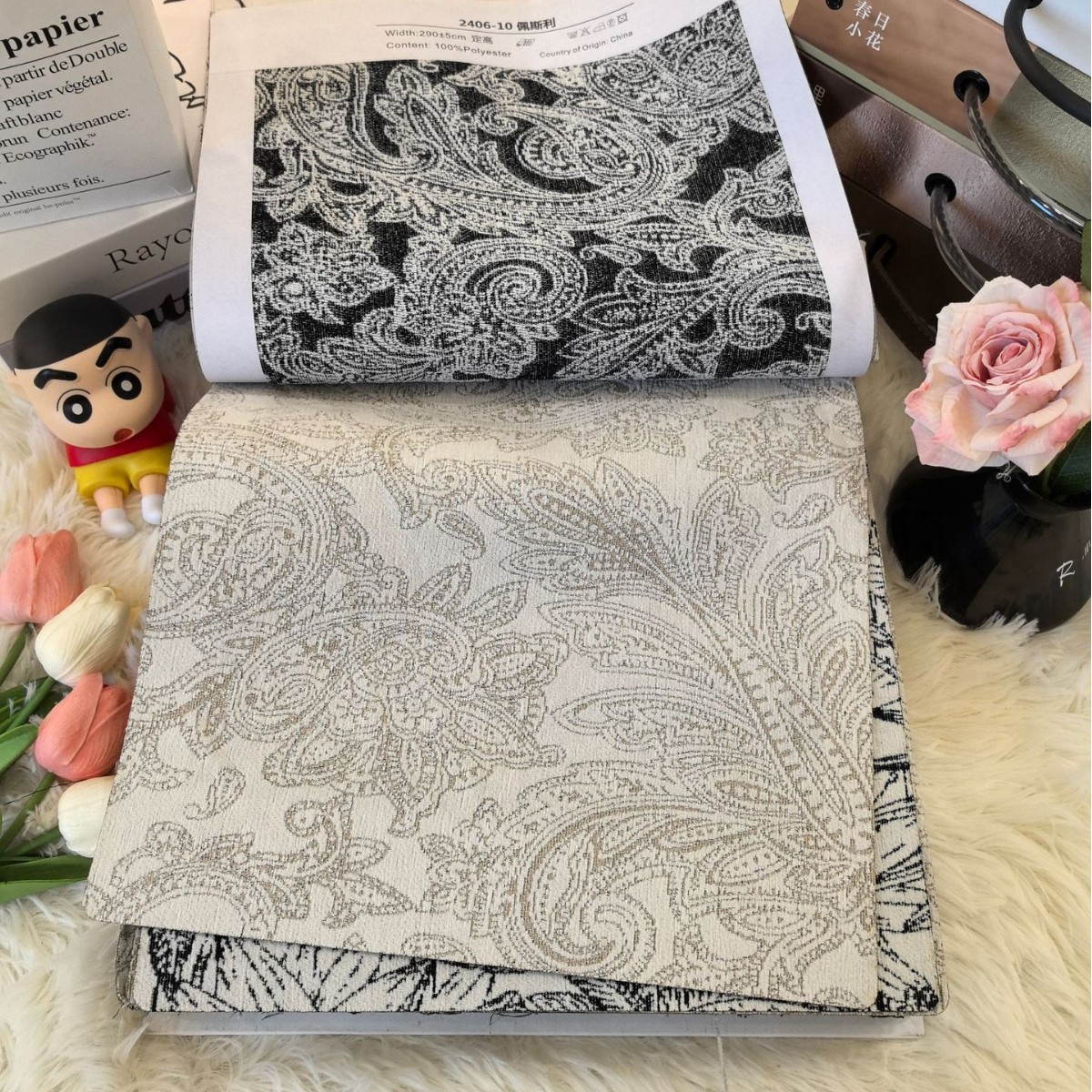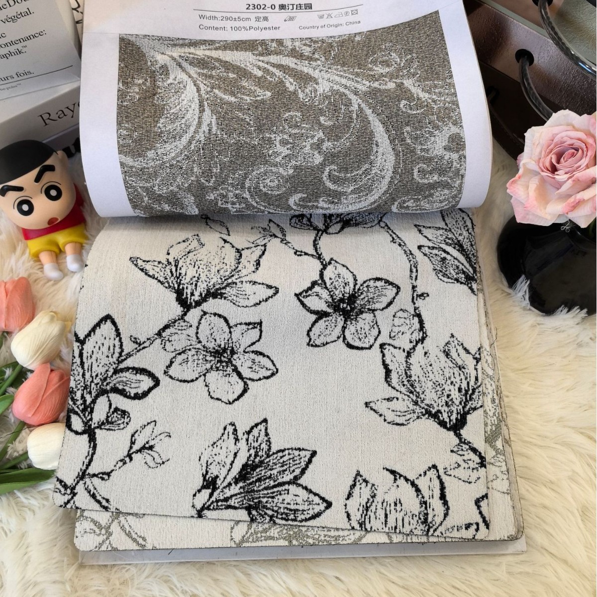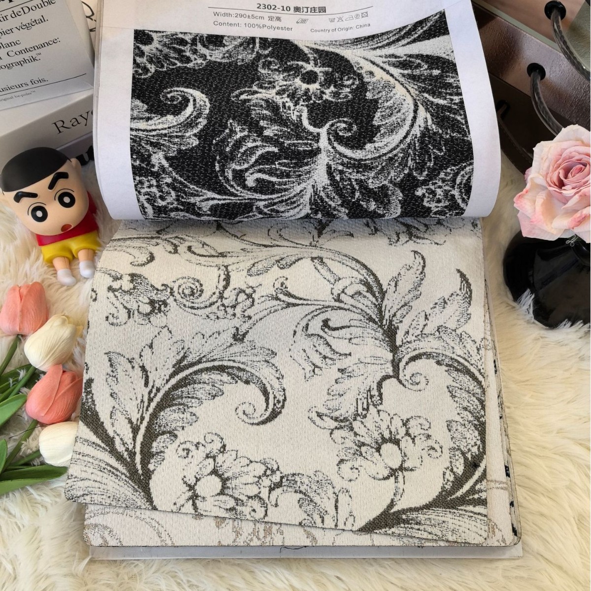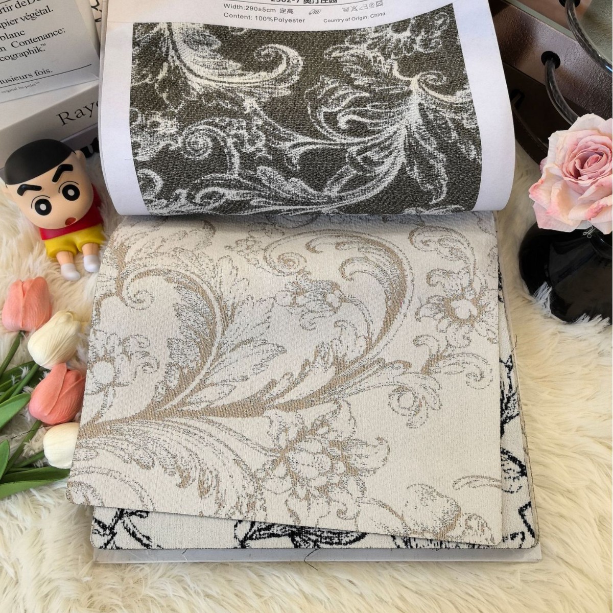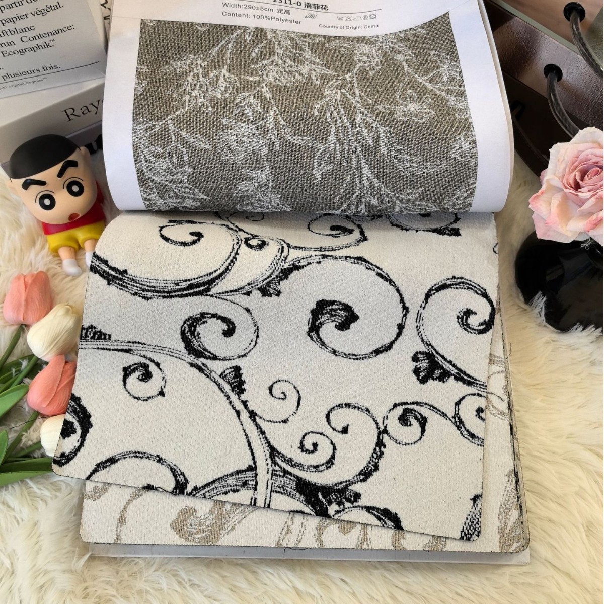프랑스 복고풍 셔닐 자카드 커튼, 중세 스타일 원사 염색 꽃무늬 거실 침실 암막 커튼 원단 도매스토어 가기