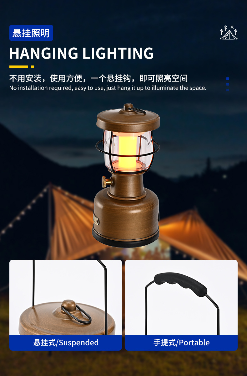 팬텀 야외 캠핑 램프, 야외 조명, 캠프 램프, 복고풍 말 랜턴, 교수형 텐트 램프, 휴대용 분위기