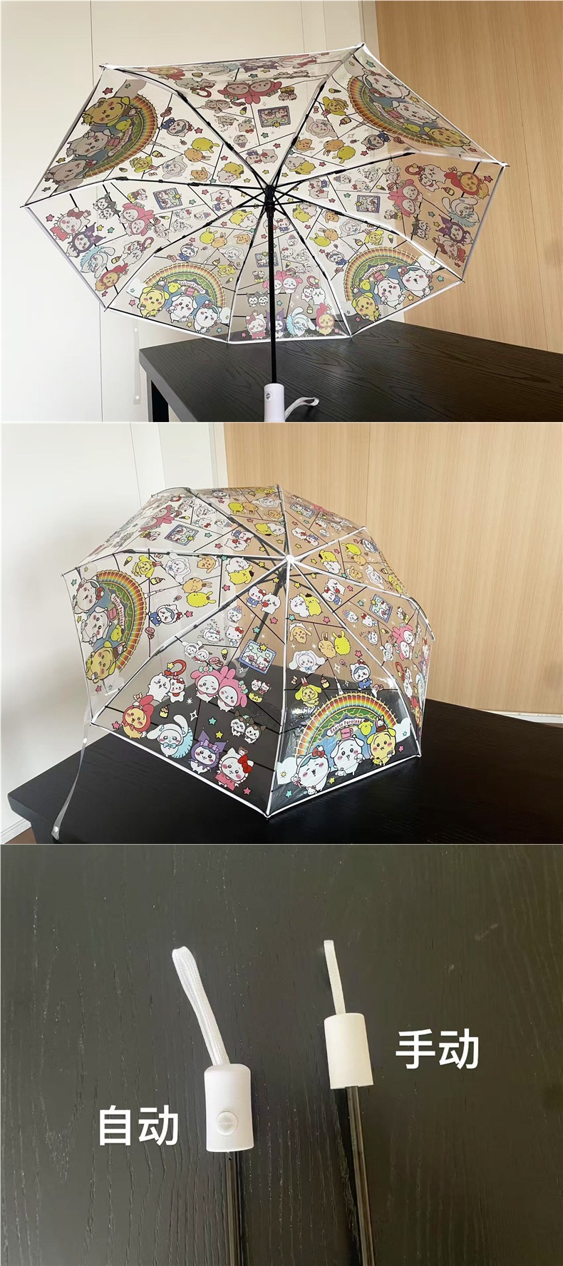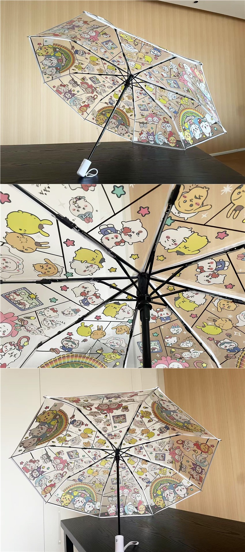 Chiikawa 우산 투명 일본 귀여운 만화 학생 접는 우산 성인과 어린이 자동 우산 도매스토어 가기
