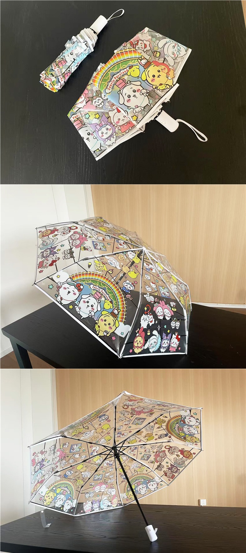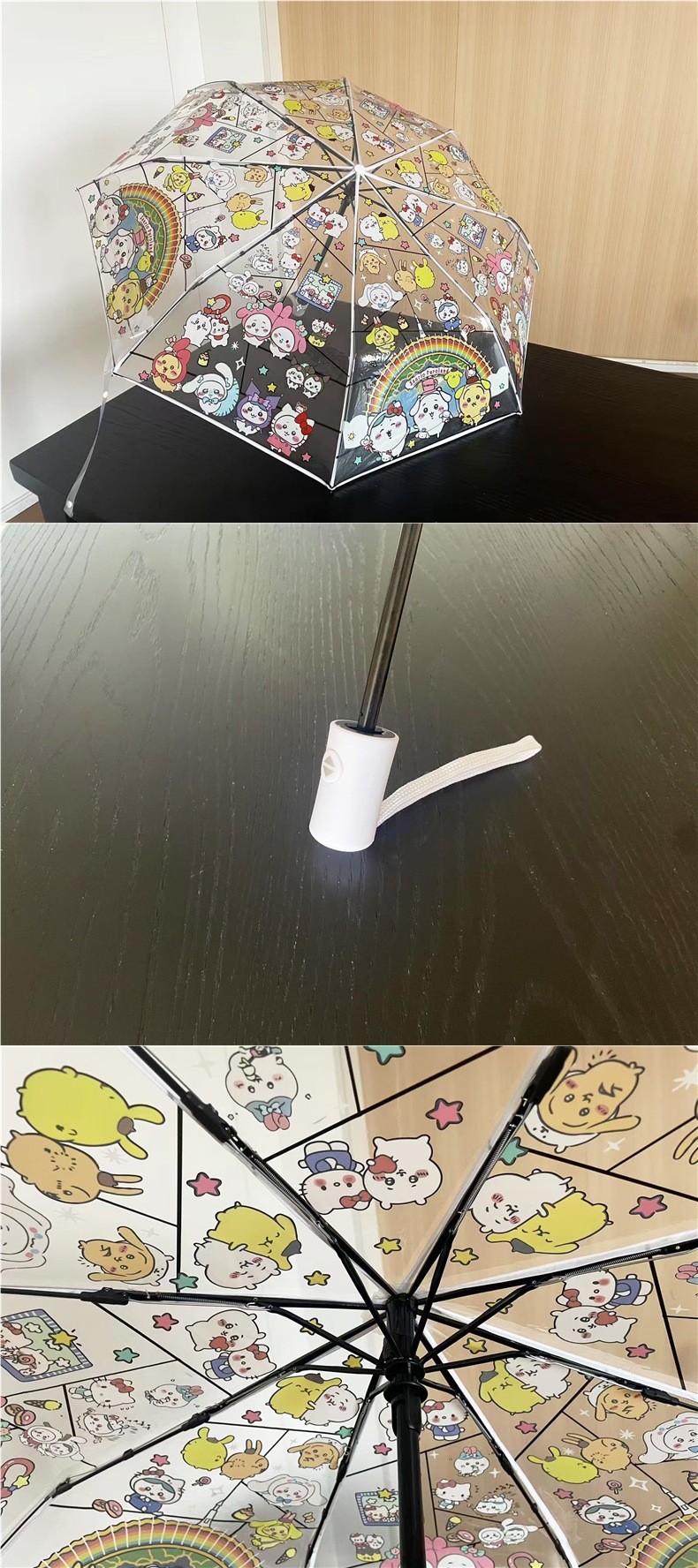 Chiikawa 우산 투명 일본 귀여운 만화 학생 접는 우산 성인과 어린이 자동 우산 도매