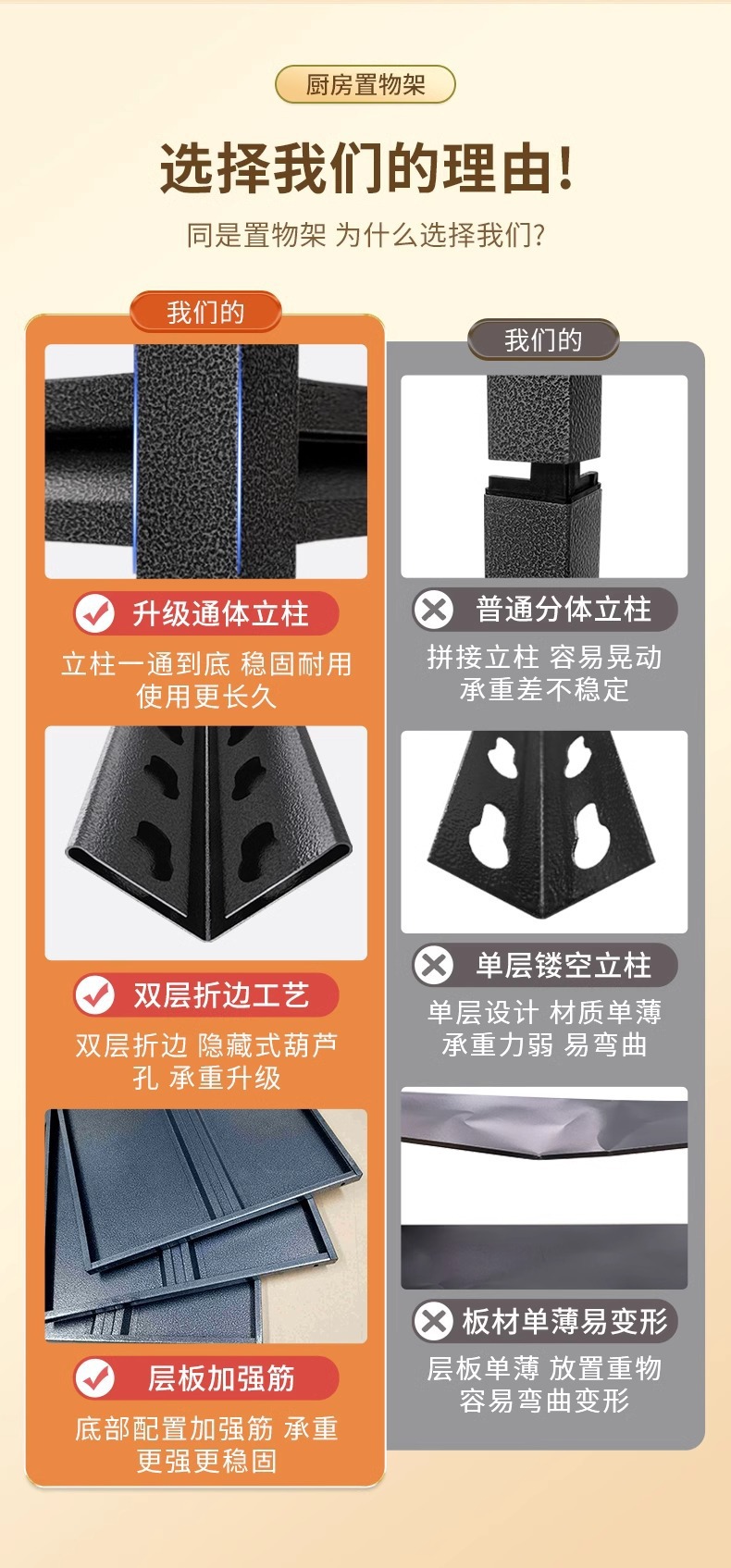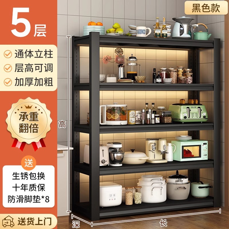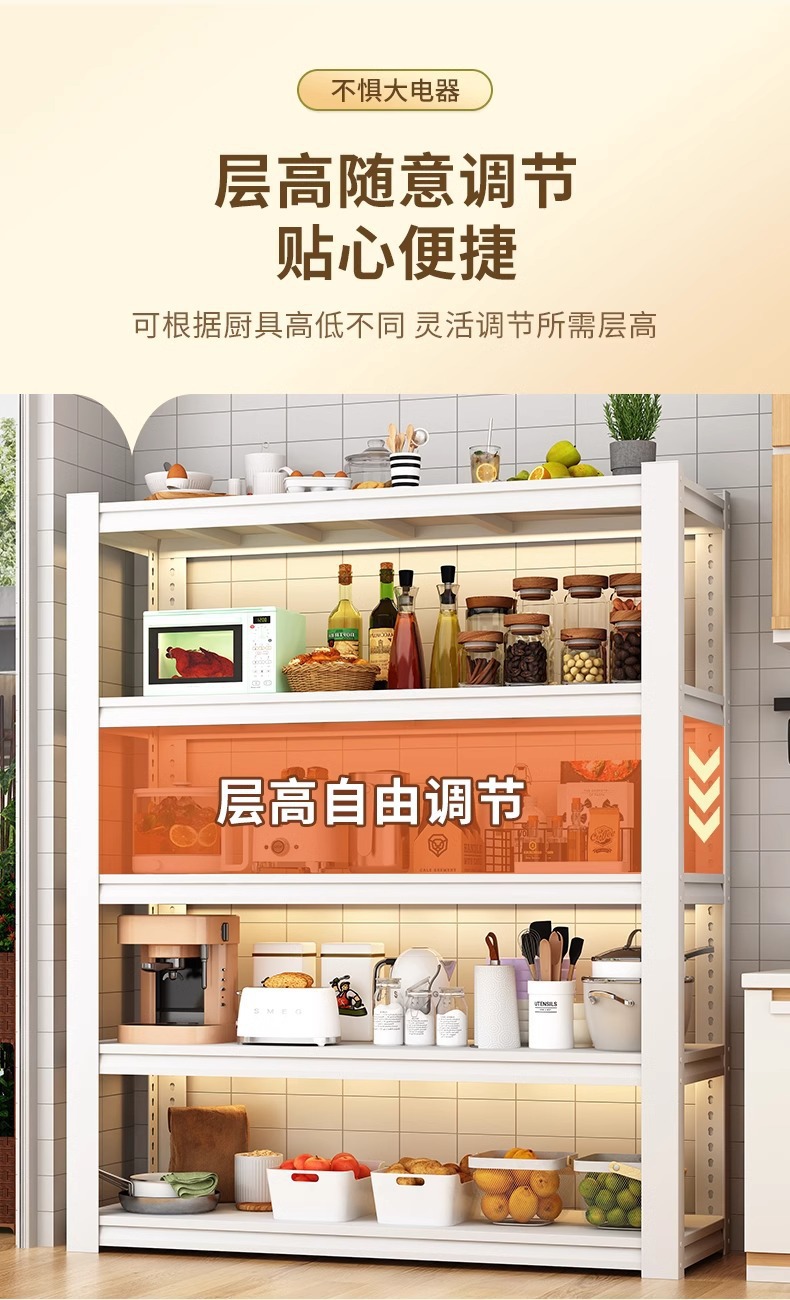주방 다층 바닥에서 천장까지 두꺼운 보관 랙 다기능 전자 레인지 랙 가정용 선반 보관 코너 랙
