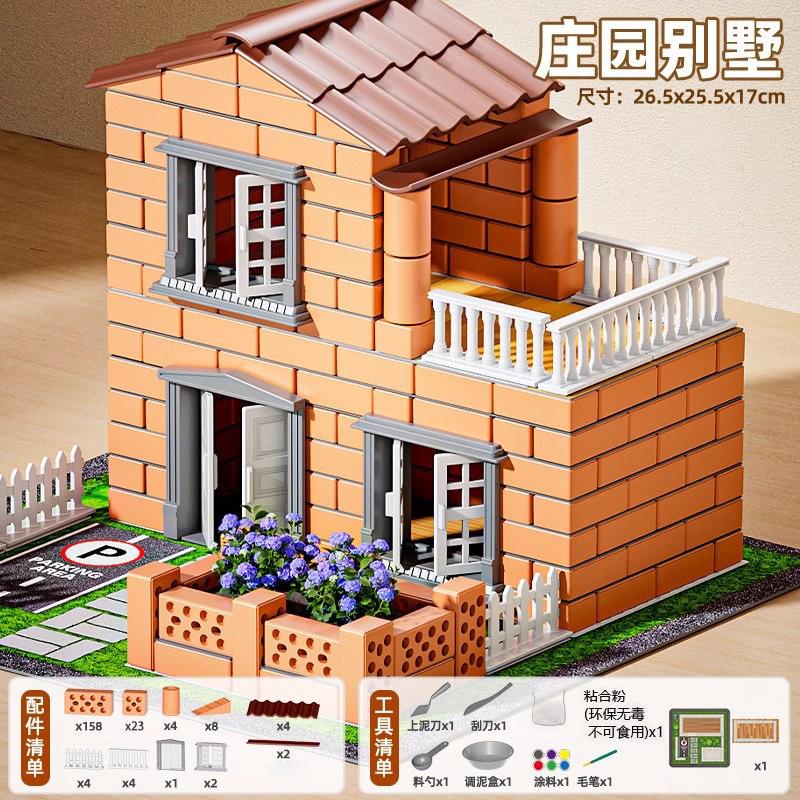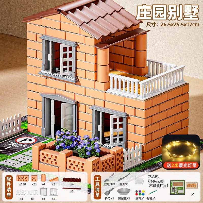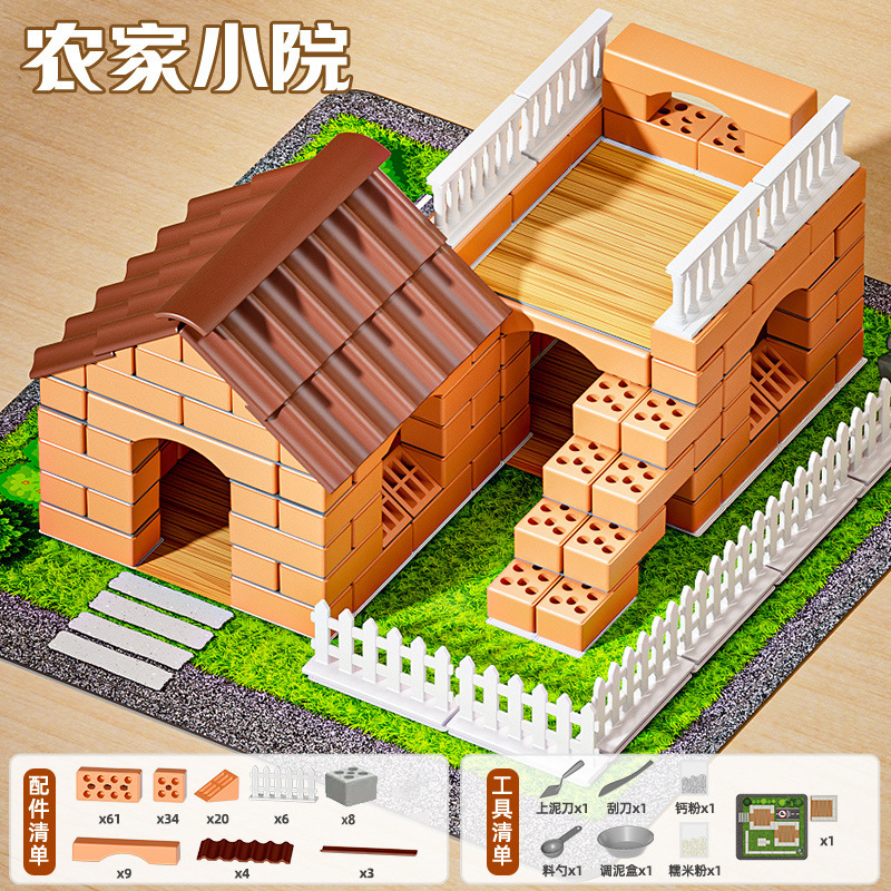 집을 짓고 벽을 쌓는 벽돌공 장난감, 건축가의 손으로 만든 벽돌, 어린이 명절을 위한 미니 조립품