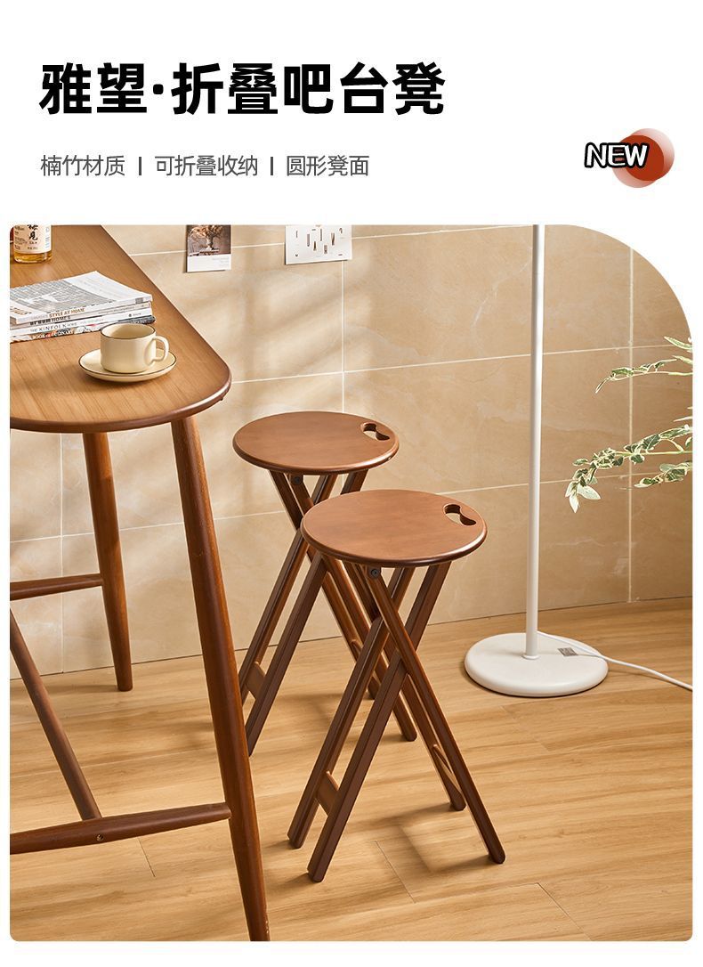 간단한 현대 대나무 바 의자 휴대용 주방 높은 의자 가정용 이중 목적 접이식 높이 조절 야외 접이식 의자스토어 가기
