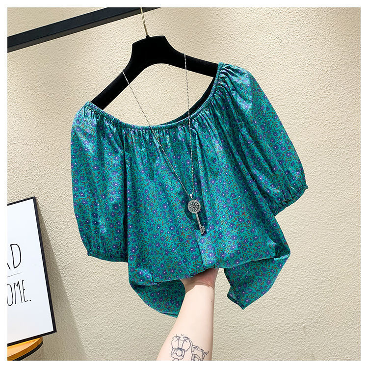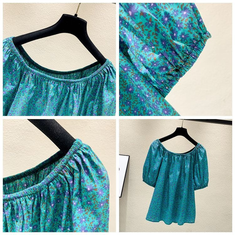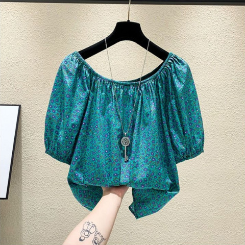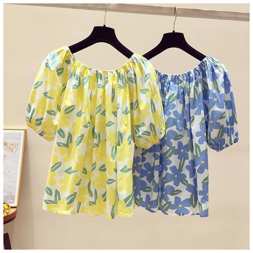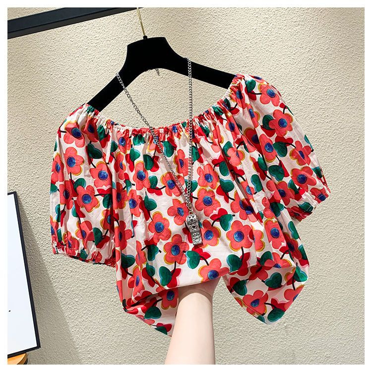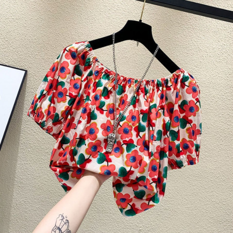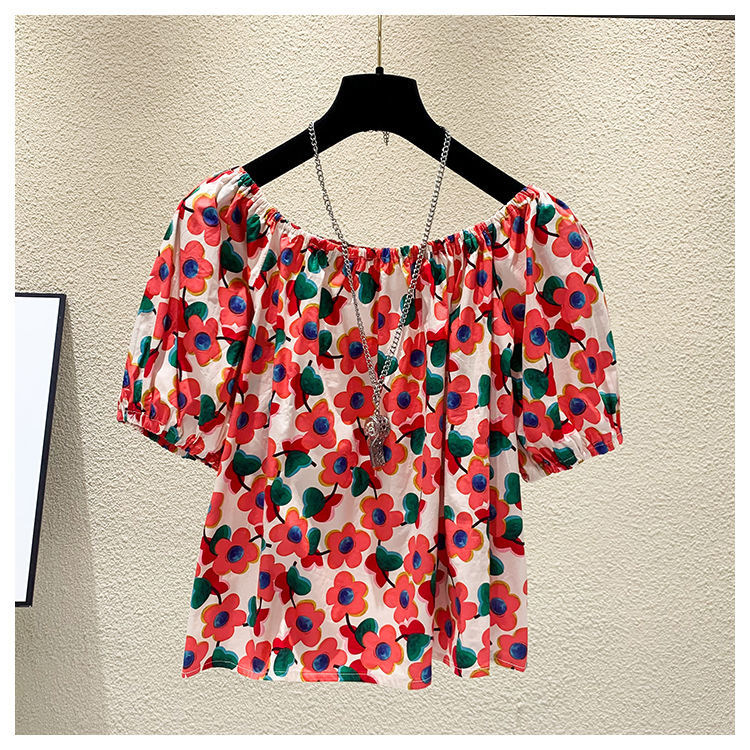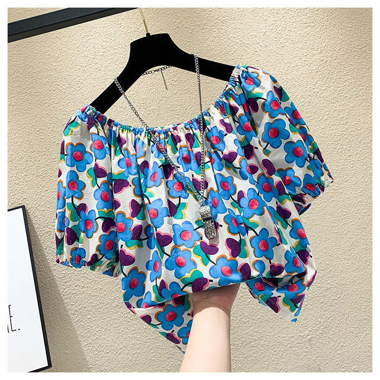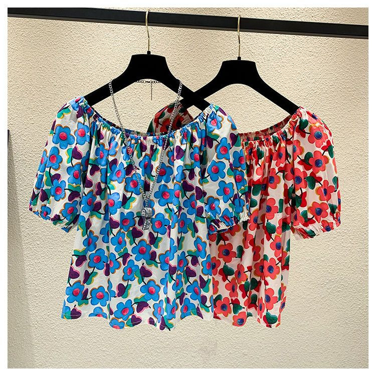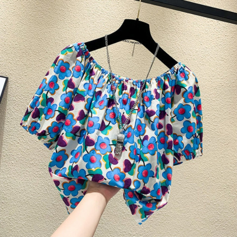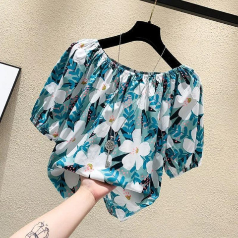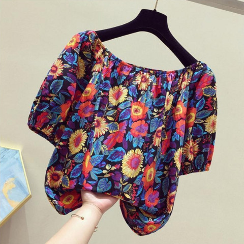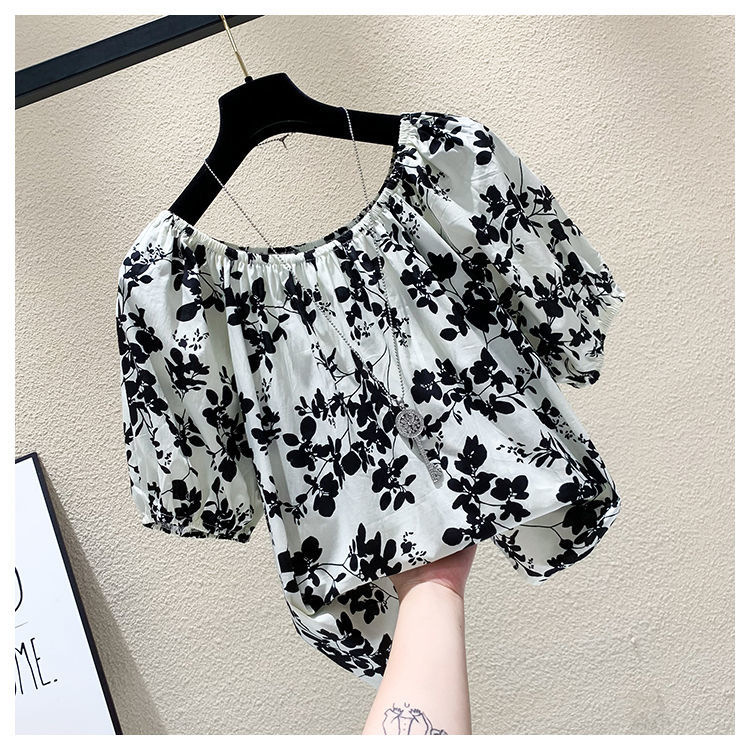 여성을위한 꽃 원 라인 칼라 반팔 티셔츠 탑 2025 여름 느슨한 틈새 시폰 셔츠 여성 세련된 서양식 셔츠 유행스토어 가기