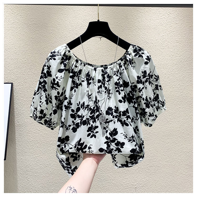 여성을위한 꽃 원 라인 칼라 반팔 티셔츠 탑 2025 여름 느슨한 틈새 시폰 셔츠 여성 세련된 서양식 셔츠 유행