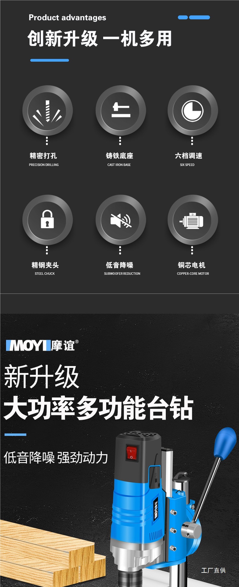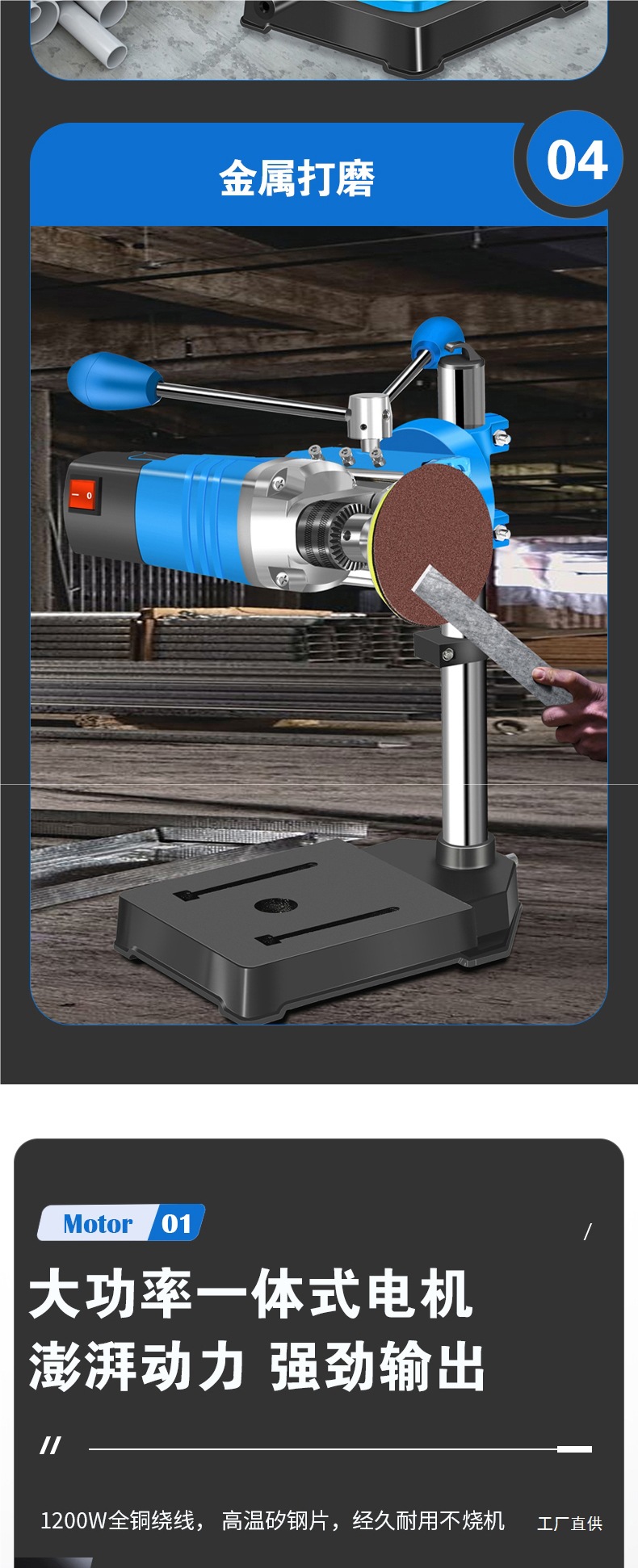 • 1200W 1단 감속 업그레이드 벤치 드릴[중판] + 견고한 다기능 작업대 + 트위스트 드릴 13개 세트