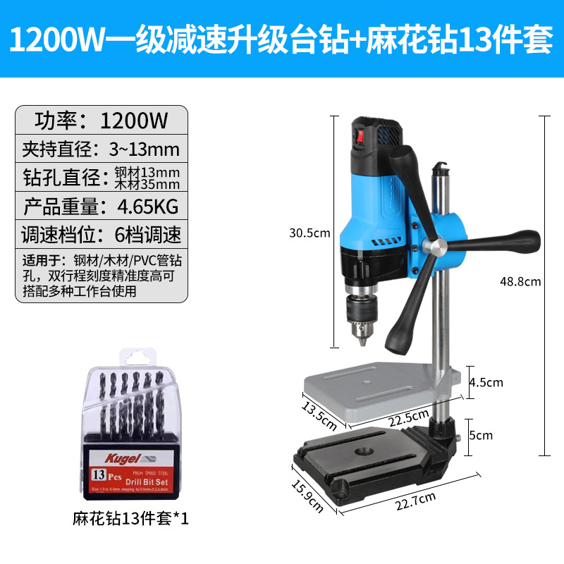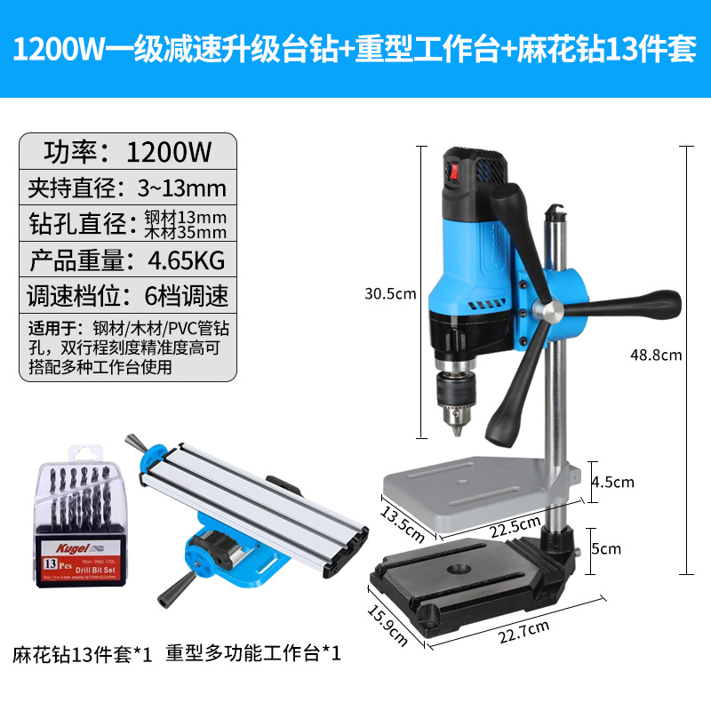 • 1200w 2단 감속 벤치 드릴 + 견고한 다기능 작업대 + 트위스트 드릴 13개 세트