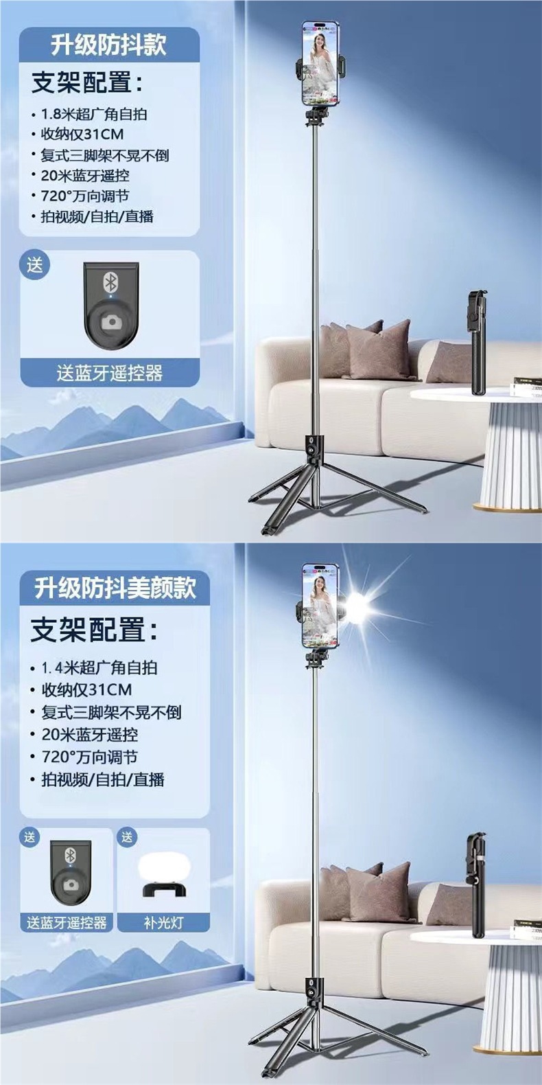 • 스타라이트 화이트 [블루투스 리모컨 + 통합 스토리지]-[여행] 1.0m + 필라이트丨용골 삼각대