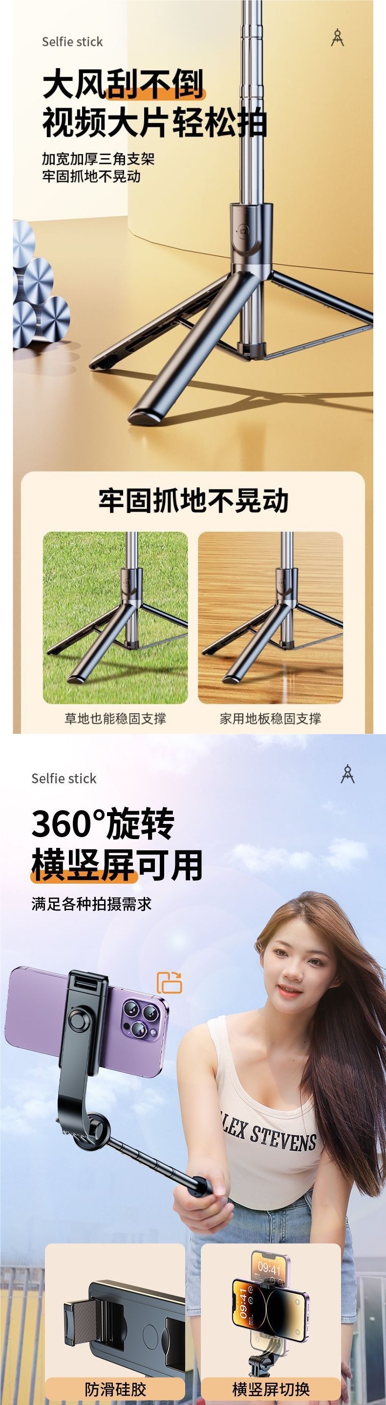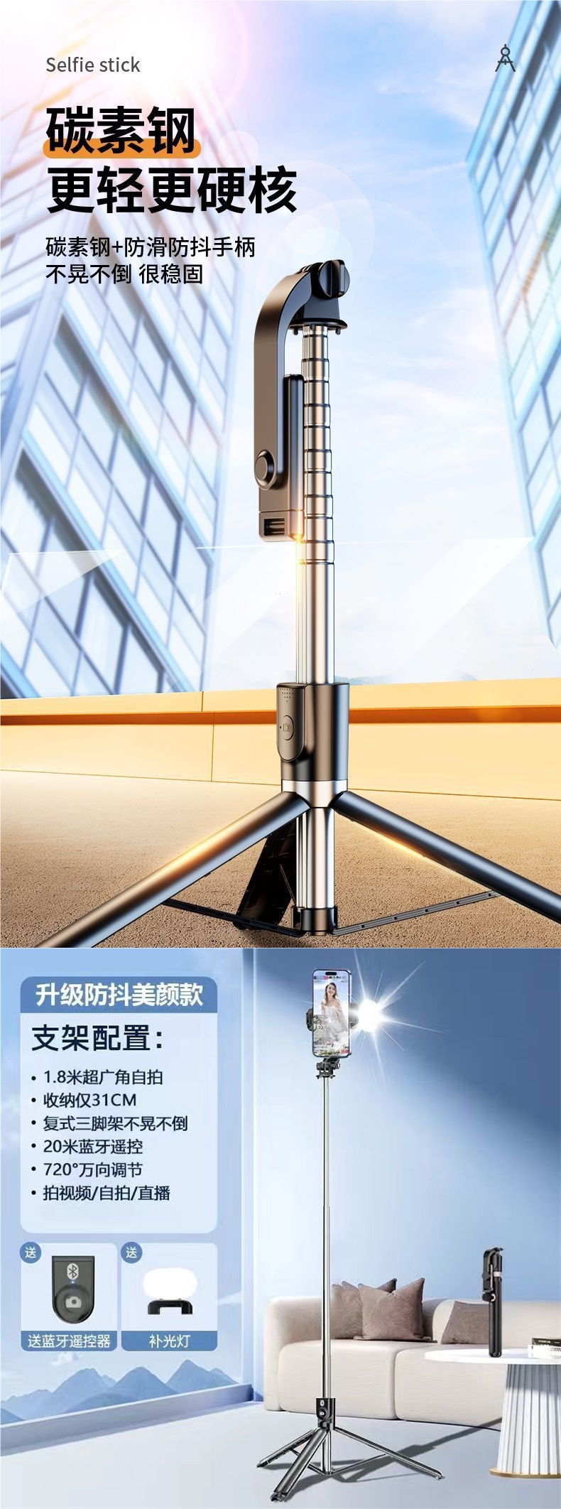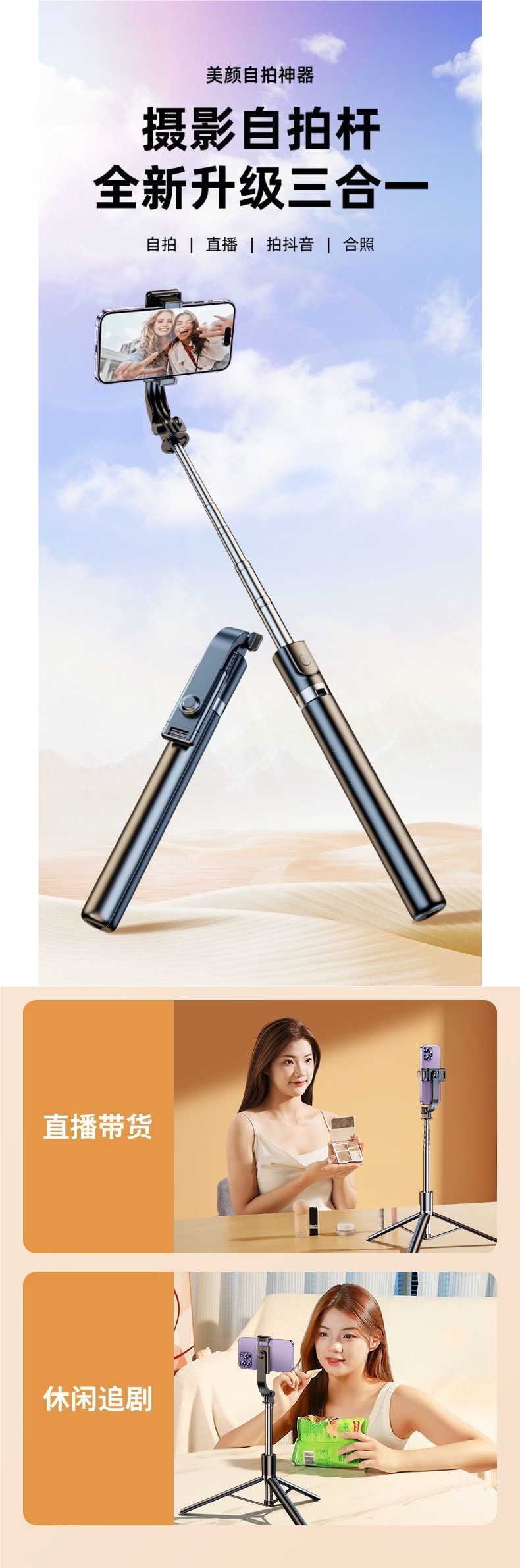 블루투스 셀카봉 삼각대, 다기능 셀카 라이브 방송, 여행용 휴대폰봉, 짧은 비디오 촬영 장비, 범용스토어 가기