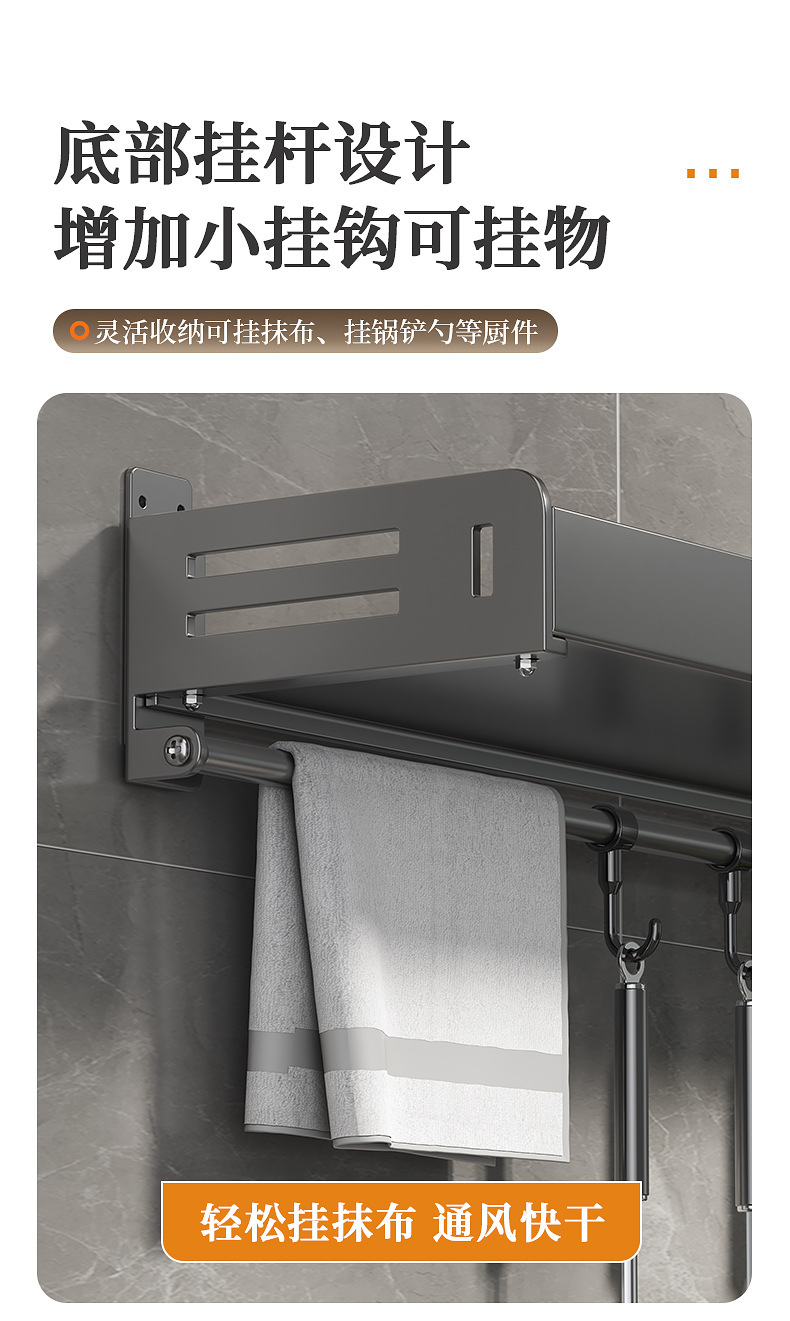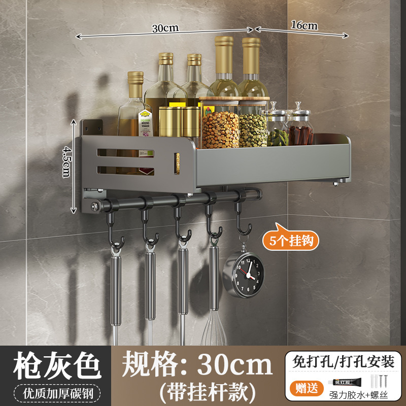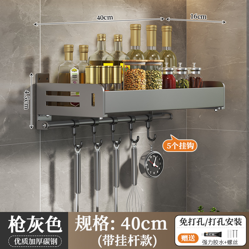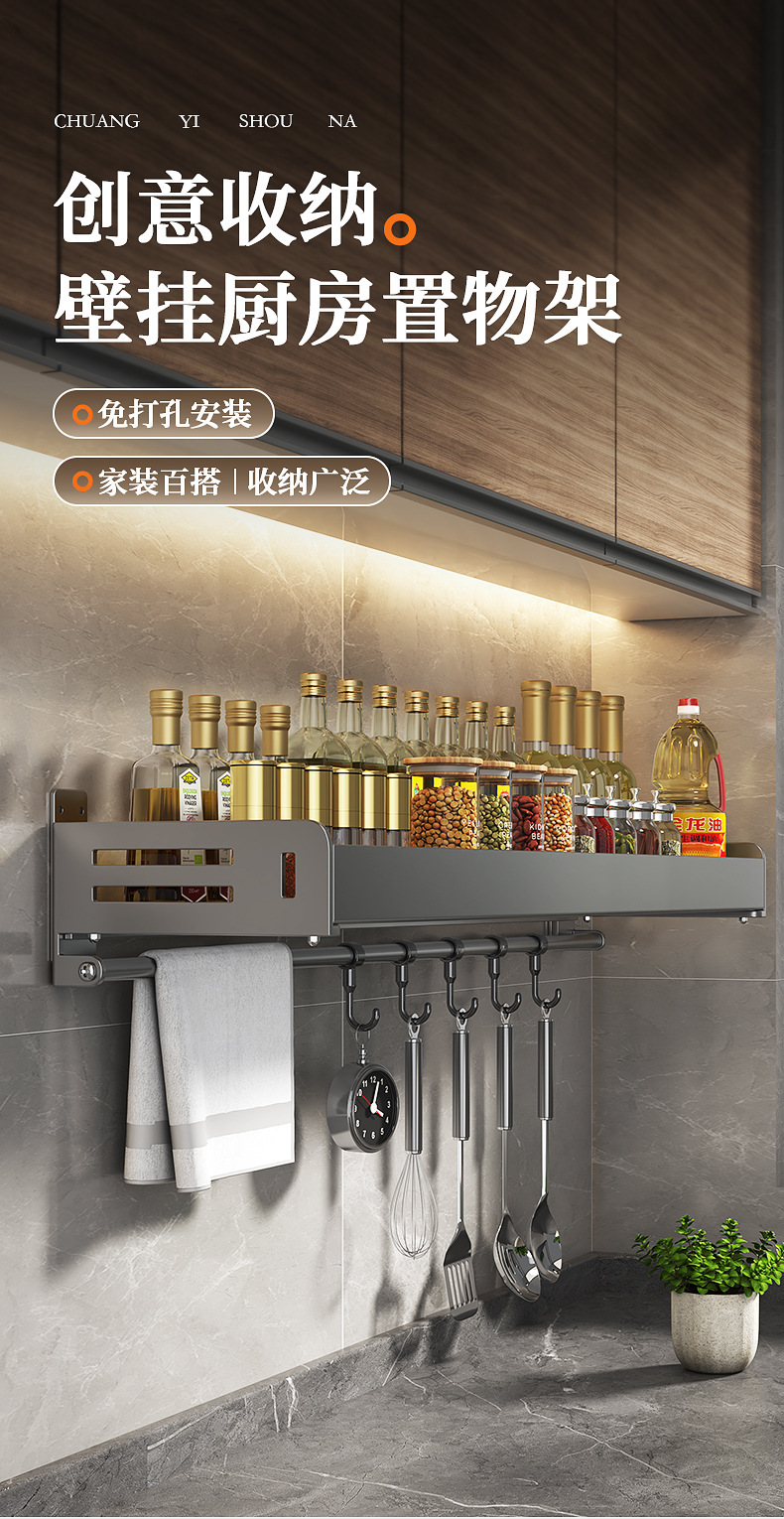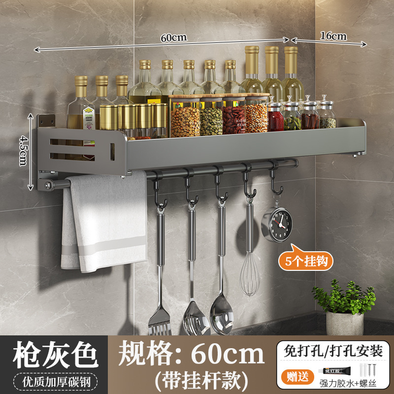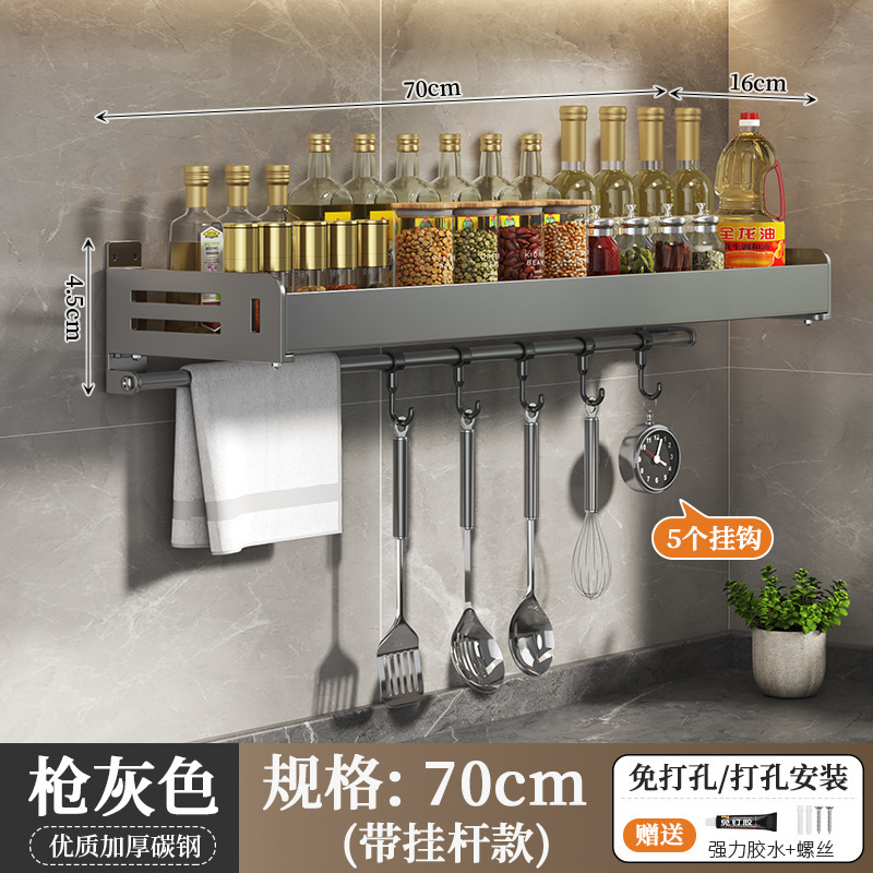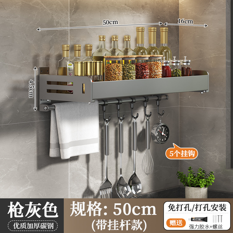주방 수납선반, 펀치 없는 가정용 걸이, 벽걸이 수건걸이, 주방용품 정리 수납선반, 조미료 수납선반