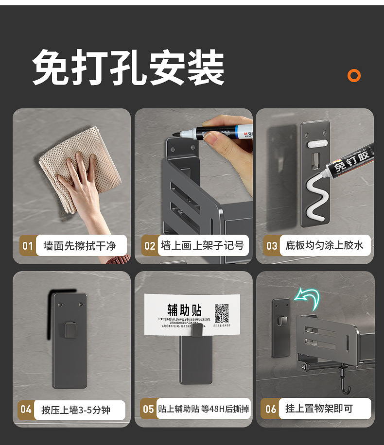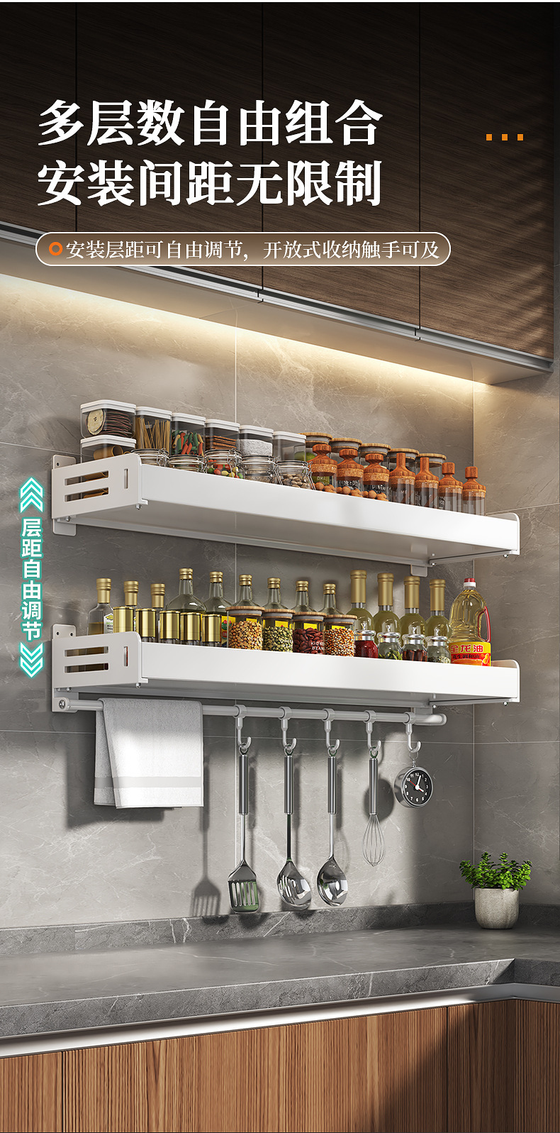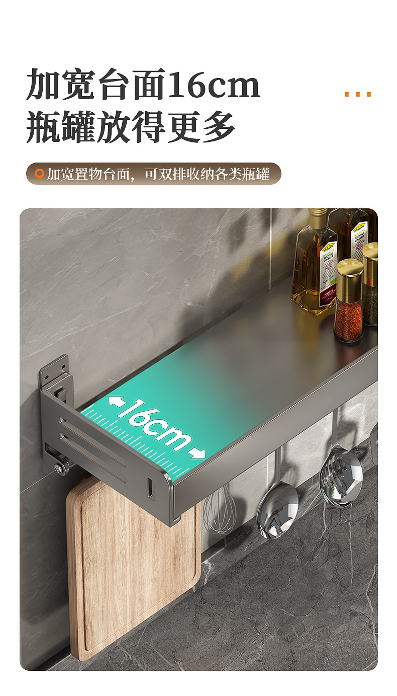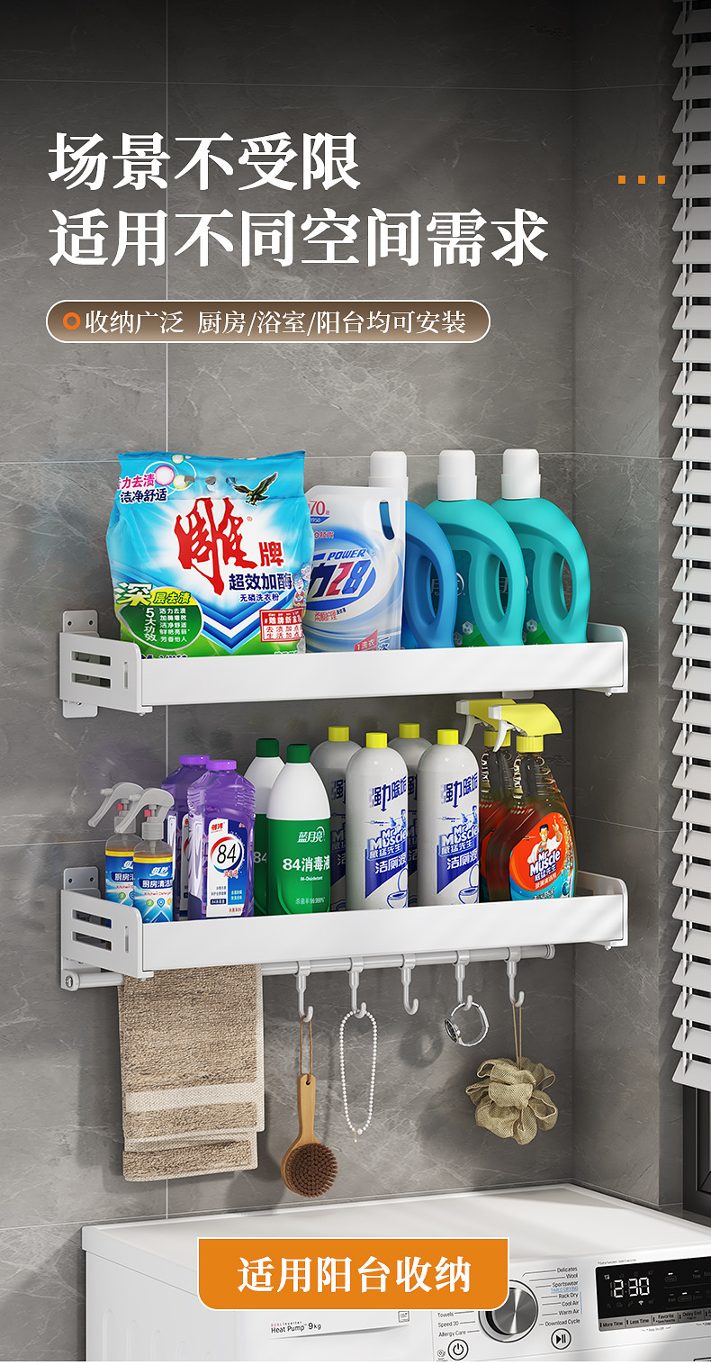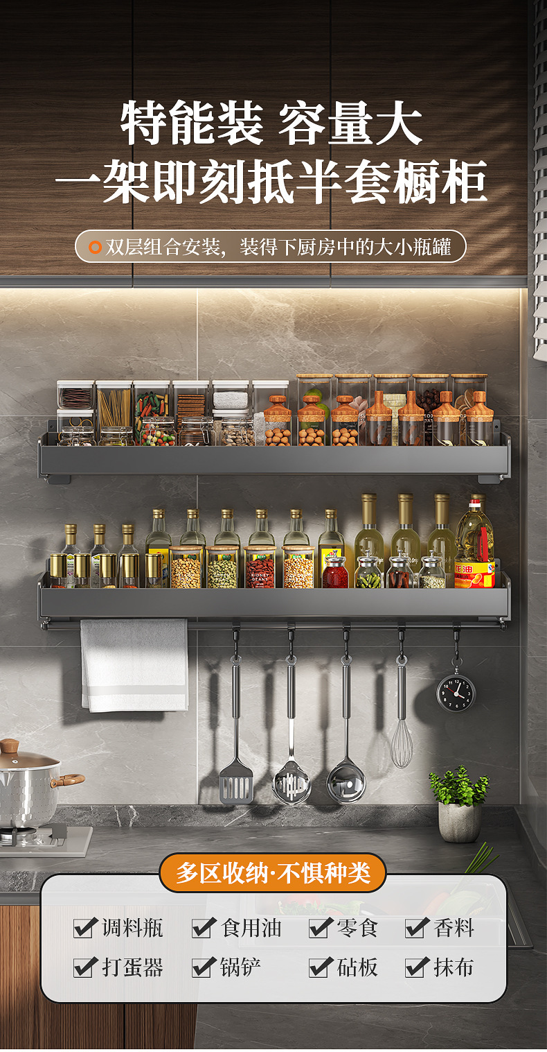 주방 수납선반, 펀치 없는 가정용 걸이, 벽걸이 수건걸이, 주방용품 정리 수납선반, 조미료 수납선반