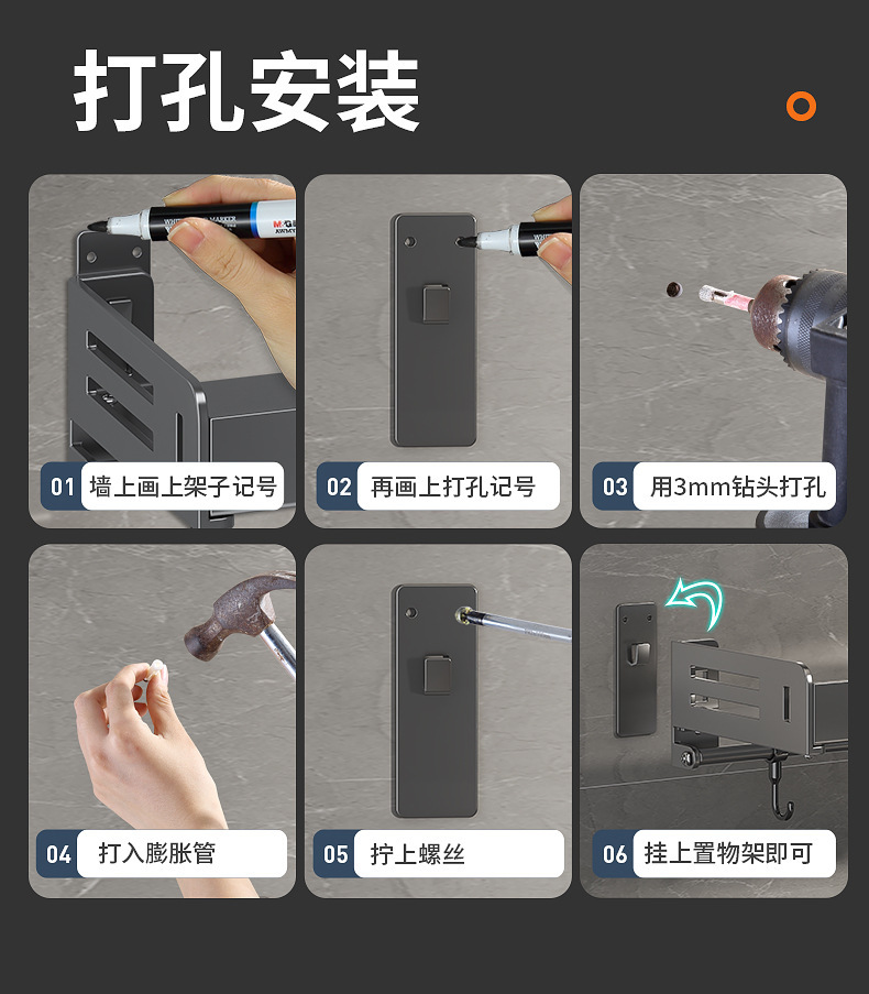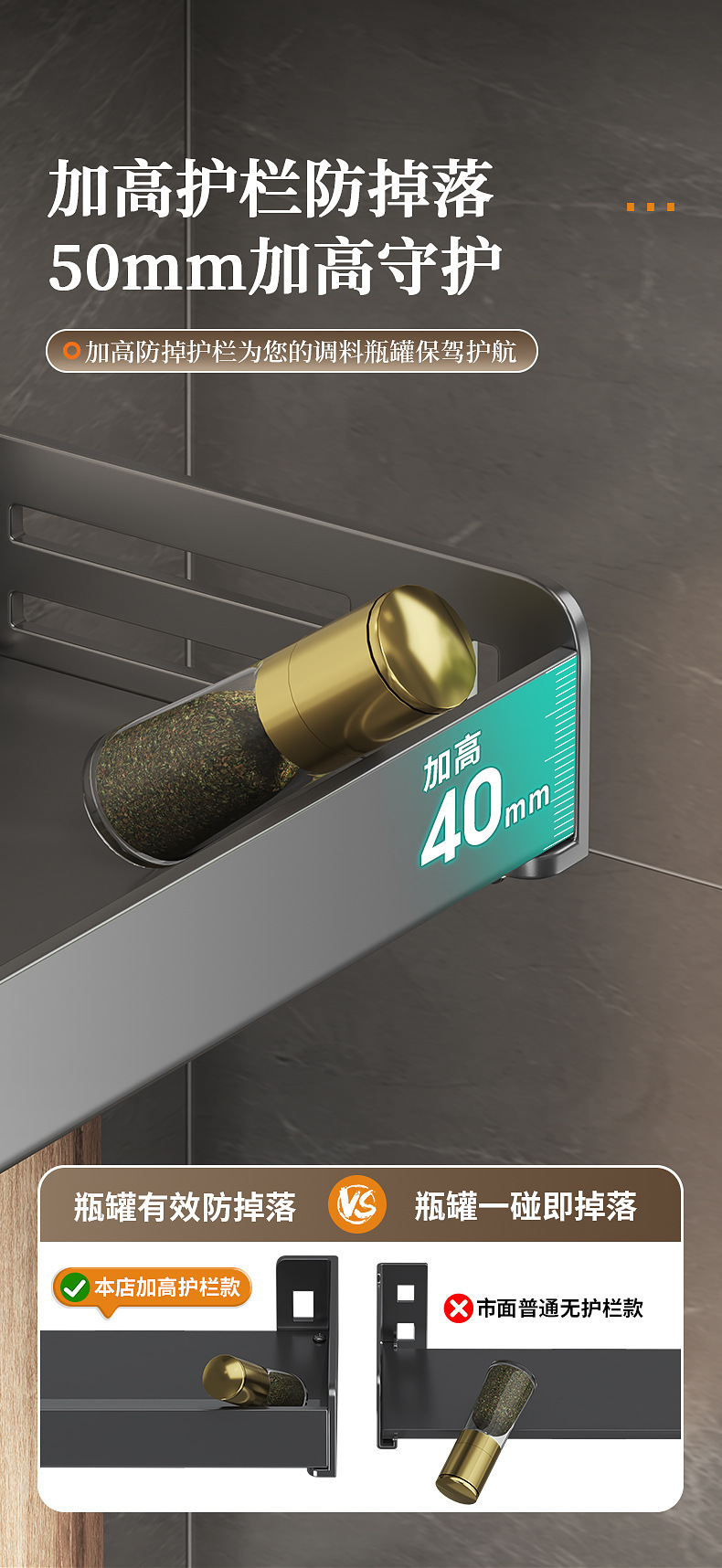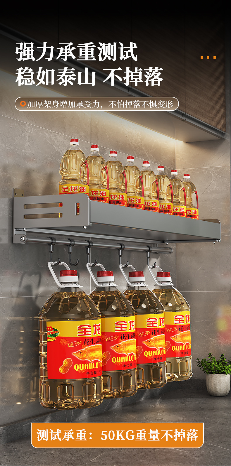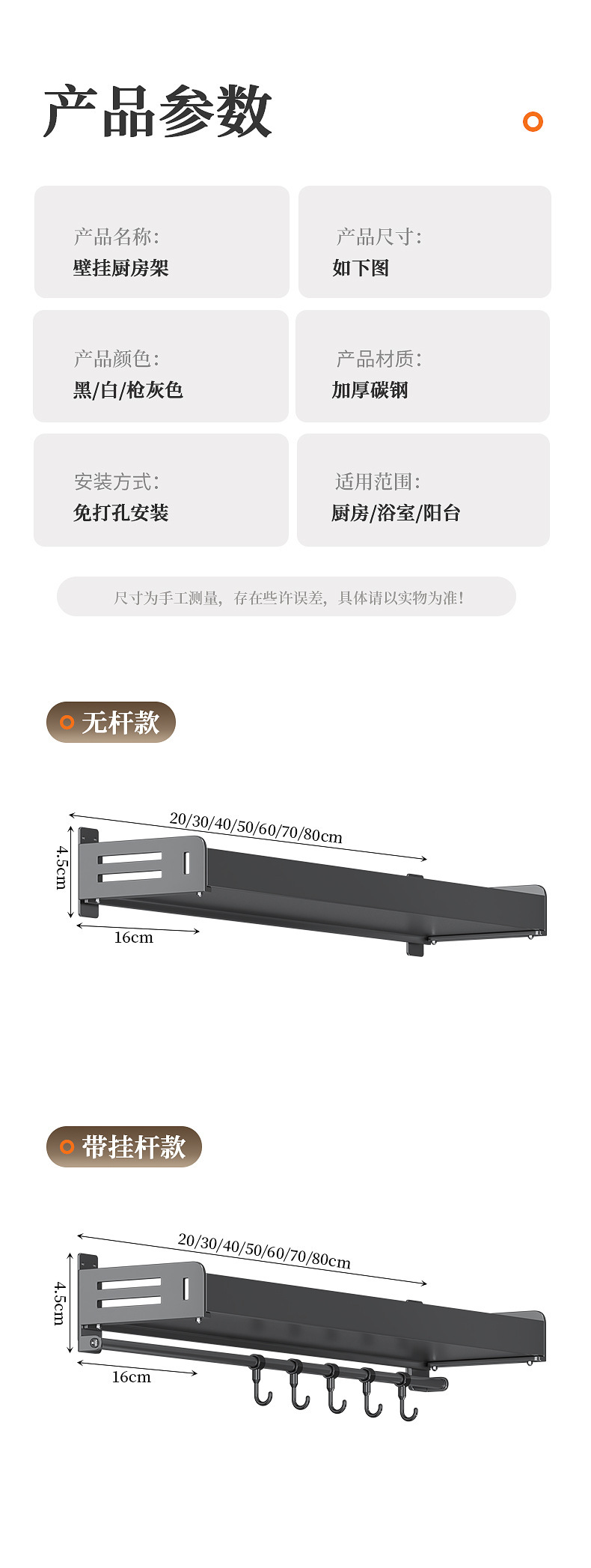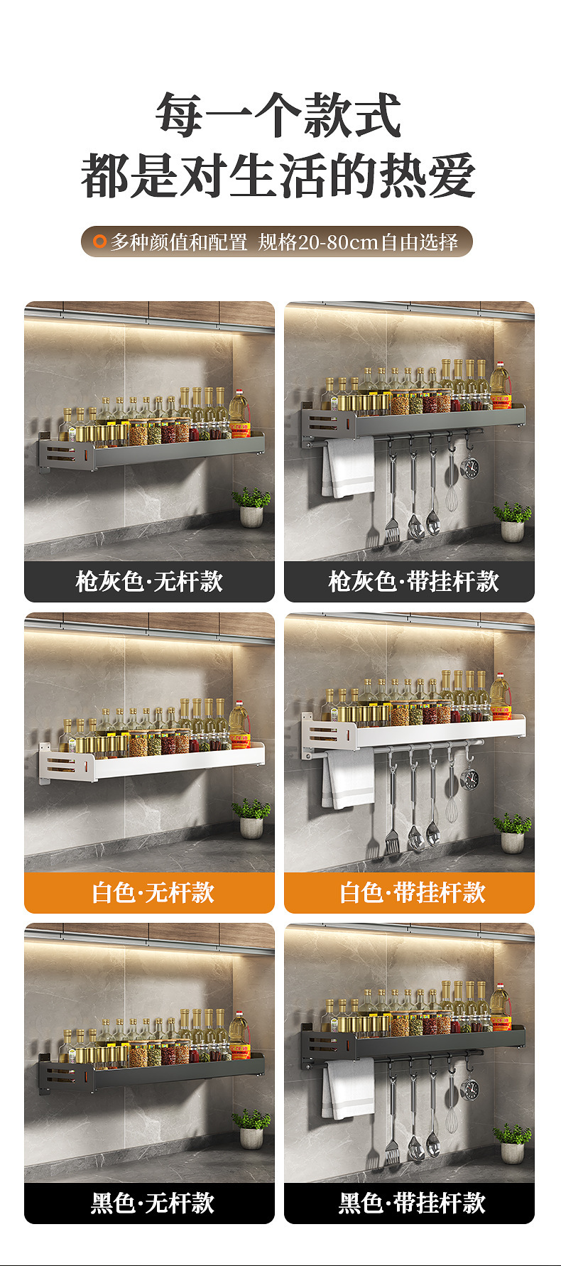 주방 수납선반, 펀치 없는 가정용 걸이, 벽걸이 수건걸이, 주방용품 정리 수납선반, 조미료 수납선반