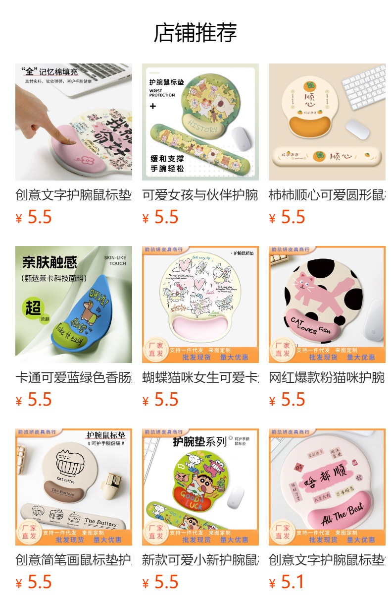 새로운 인터넷 연예인 유화 강아지 시리즈 손목 마우스 패드 귀여운 사무실 학습 두꺼운 게임 키보드 매트스토어 가기