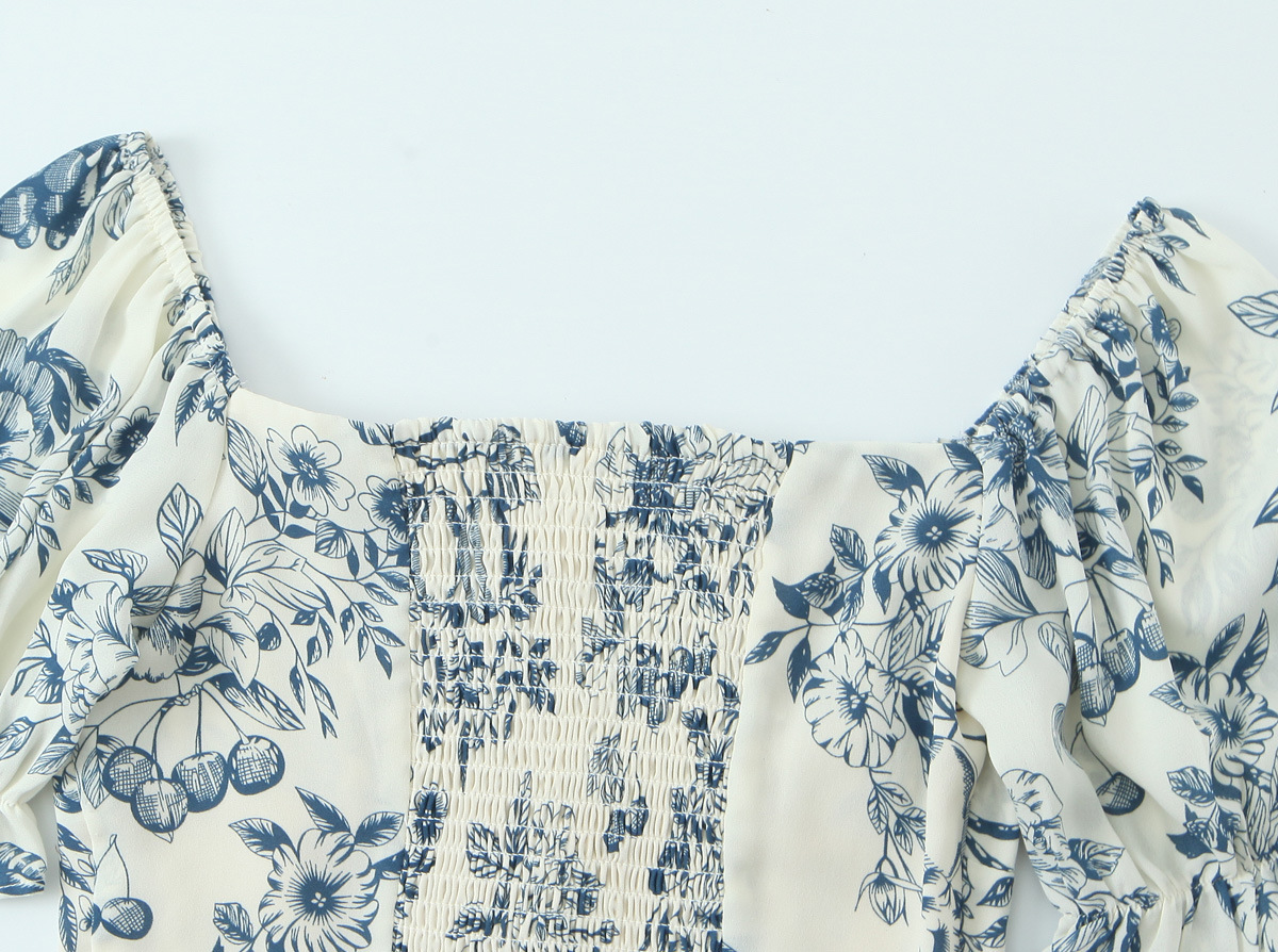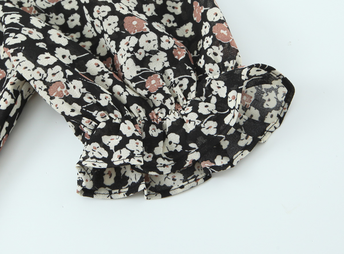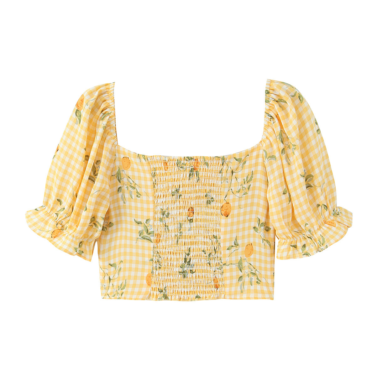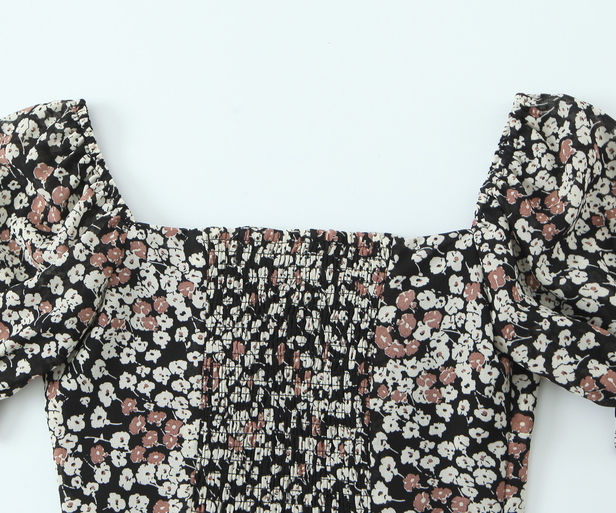 프렌치 레트로 스퀘어 넥 꽃무늬 레이스 업 슬림 반소매 쉬폰 셔츠 여름 여성 짧은 기질 다용도 탑