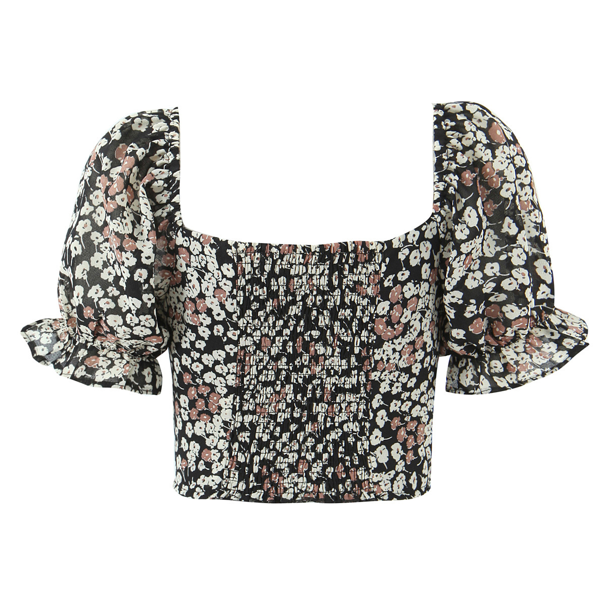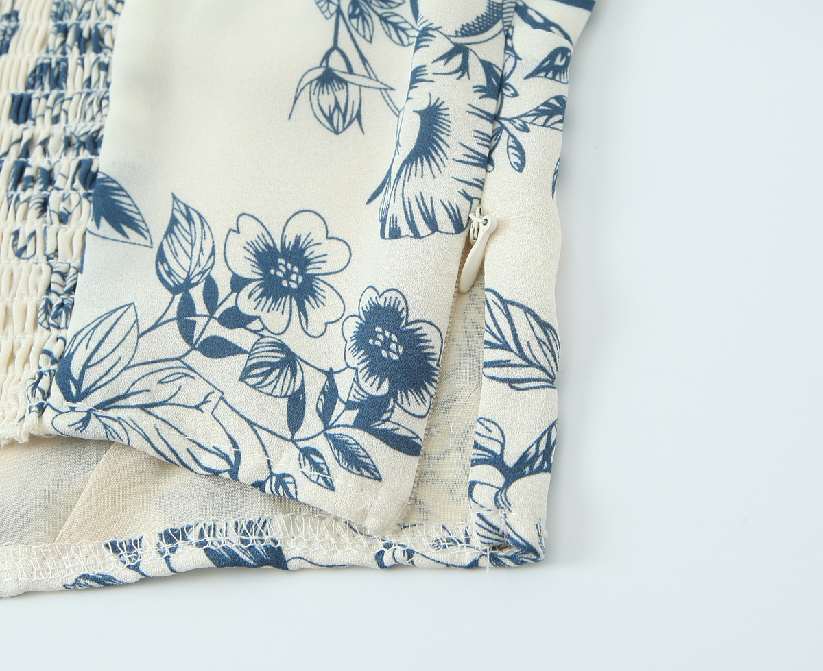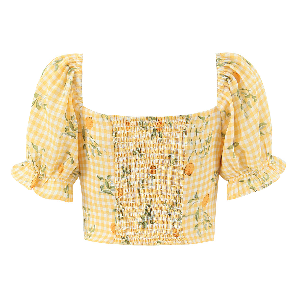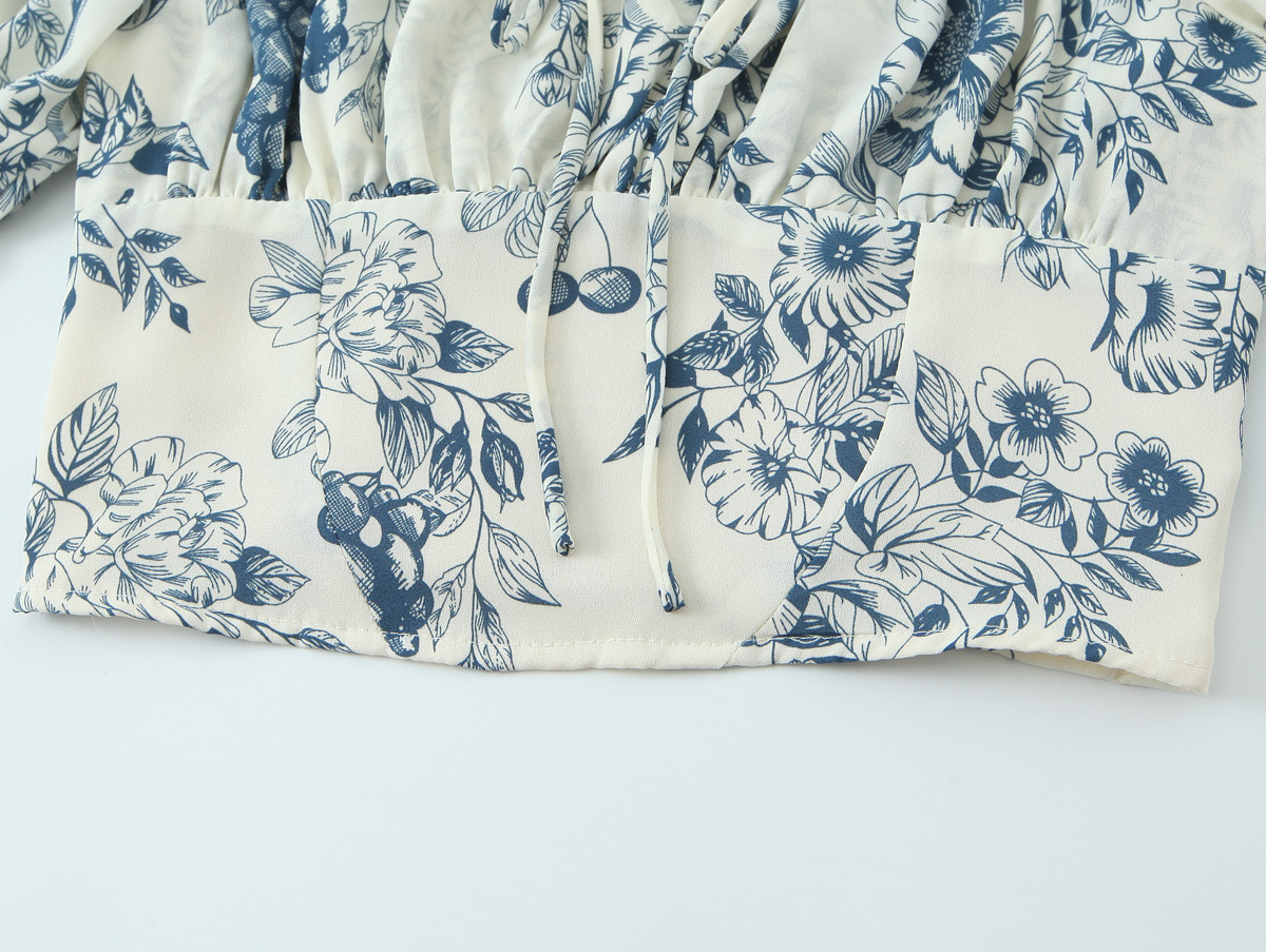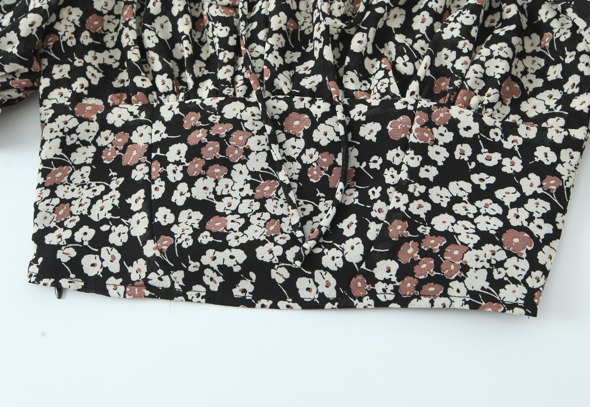 프렌치 레트로 스퀘어 넥 꽃무늬 레이스 업 슬림 반소매 쉬폰 셔츠 여름 여성 짧은 기질 다용도 탑