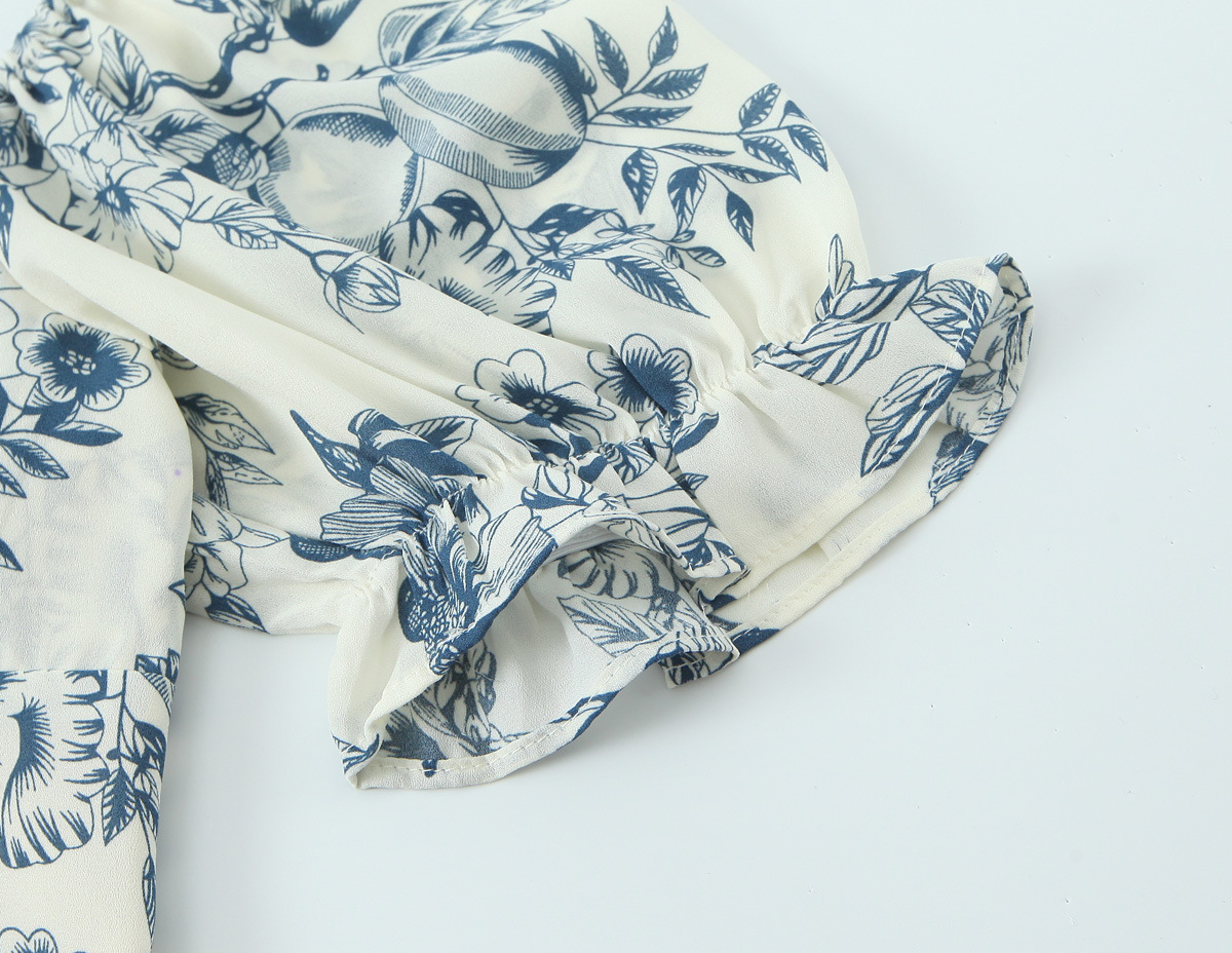 프렌치 레트로 스퀘어 넥 꽃무늬 레이스 업 슬림 반소매 쉬폰 셔츠 여름 여성 짧은 기질 다용도 탑스토어 가기