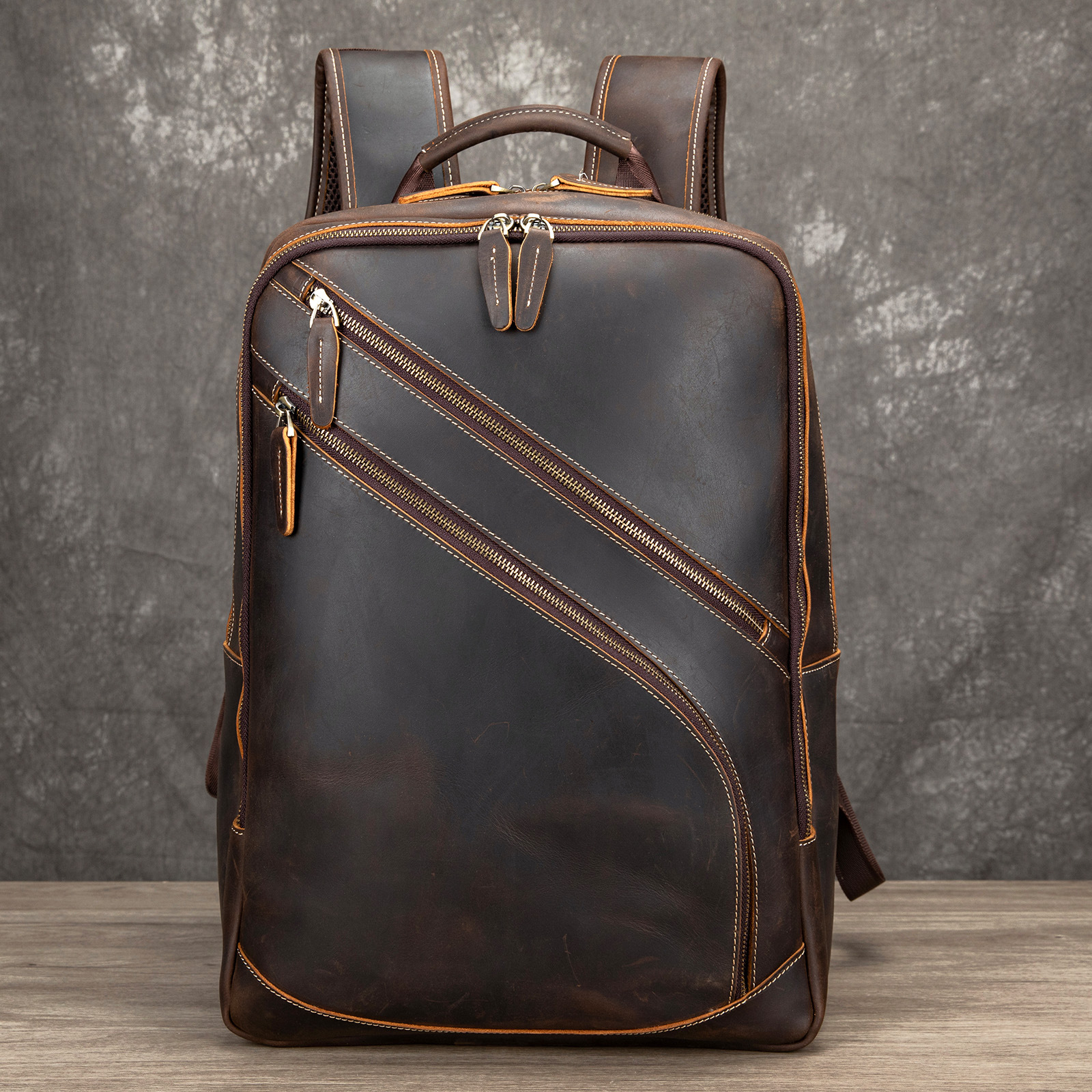 새로운 Crazy Horse 가죽 복고풍 유행 남자 배낭 패션 캐주얼 대용량 배낭 비즈니스 여행 가방