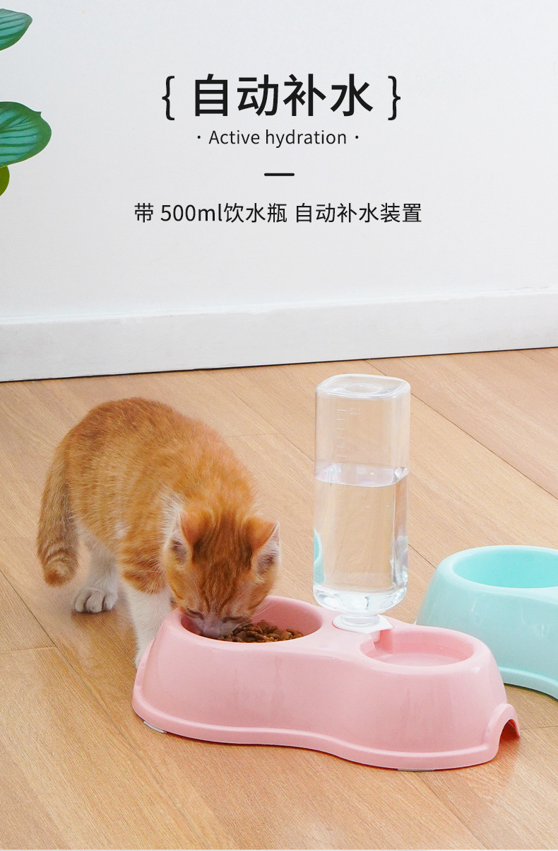 새로운 애완동물 식기, 고양이 그릇, 물과 사료 일체형 이중 그릇, 넘어짐 방지 개 그릇, 개 그릇, 고양이 자동 식수 공급기